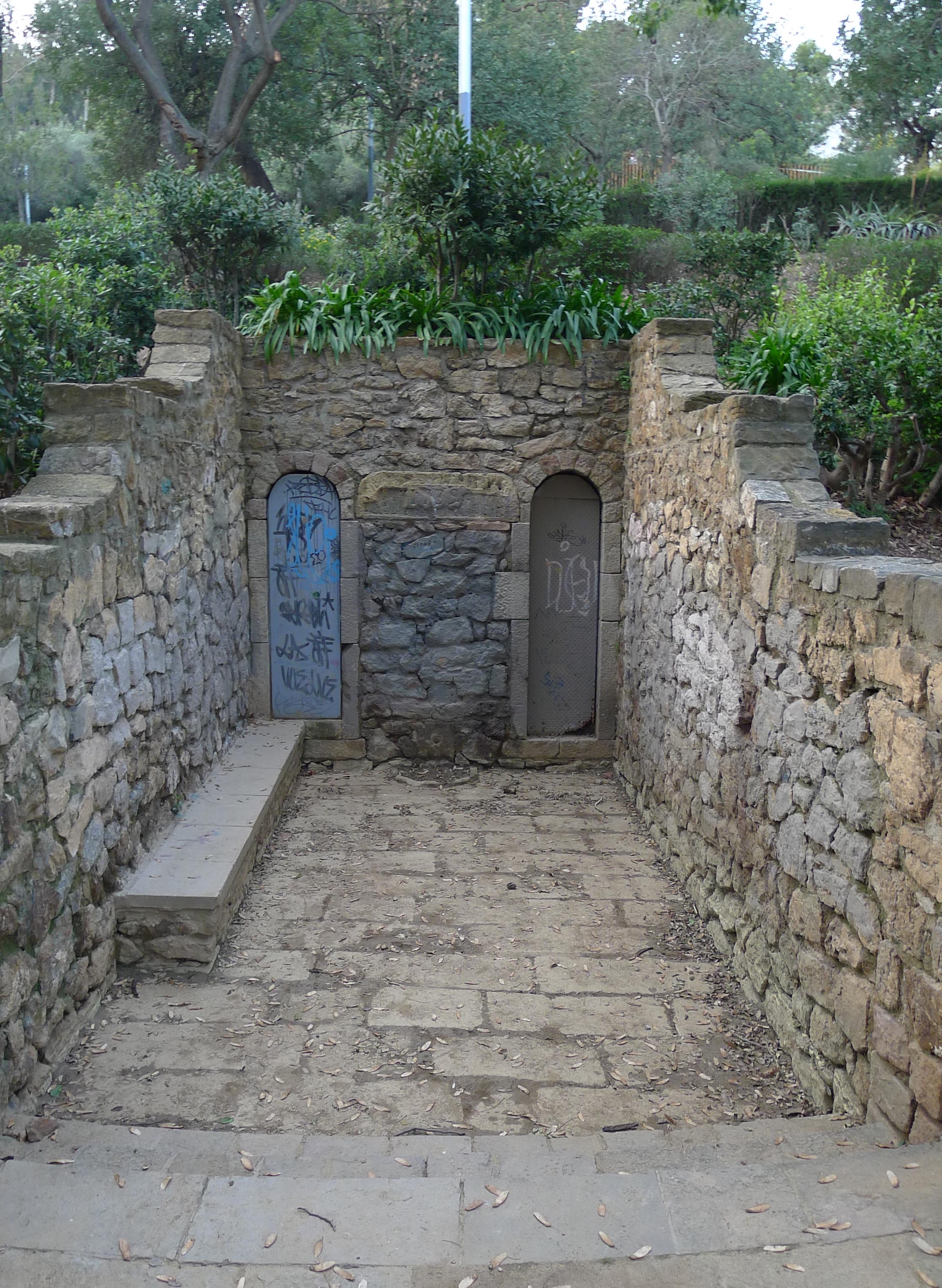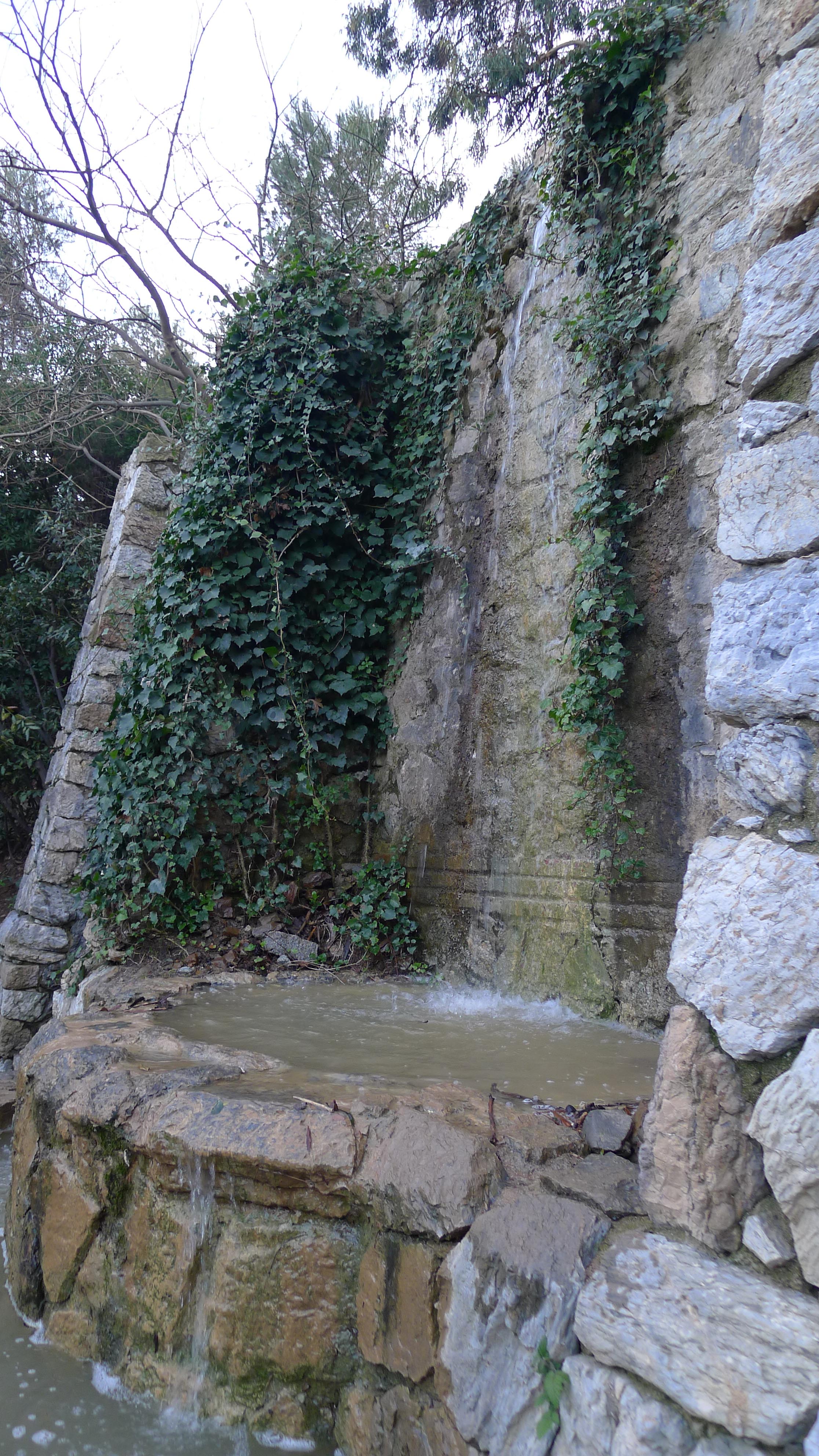 Si deixem de banda la font del Cuento i avancem parc endins, entrem de ple a la zona històrica que segueix, muntanya amunt, la traça d’un torrent. En aquest sector el parc està organitzat amb diverses terrasses amb camins i escales. Hi ha uns murets de pedra dins dels quals hi raja un corrent d’aigua que baixa des d’un safareig que hi ha més amunt. En tot aquest sector hi ha diverses làmines d’aigua amb plantes aquàtiques. L’aigua va muntanya avall tot fent petits salts. Entre les espècies vegetals que hi ha, hi podem veure garrofers, xiprers, cedres, mimoses i alzines i arbustos com el pitòspor, el llorer i el baladre. També hi ha plantes aromàtiques com el romaní i l’espígol. Des de la zona del safareig hi ha una de les vistes panoràmiques sobre Barcelona que es poden veure a diversos punts del parc.