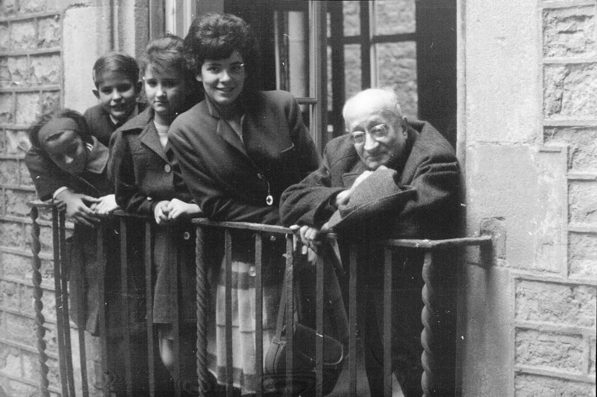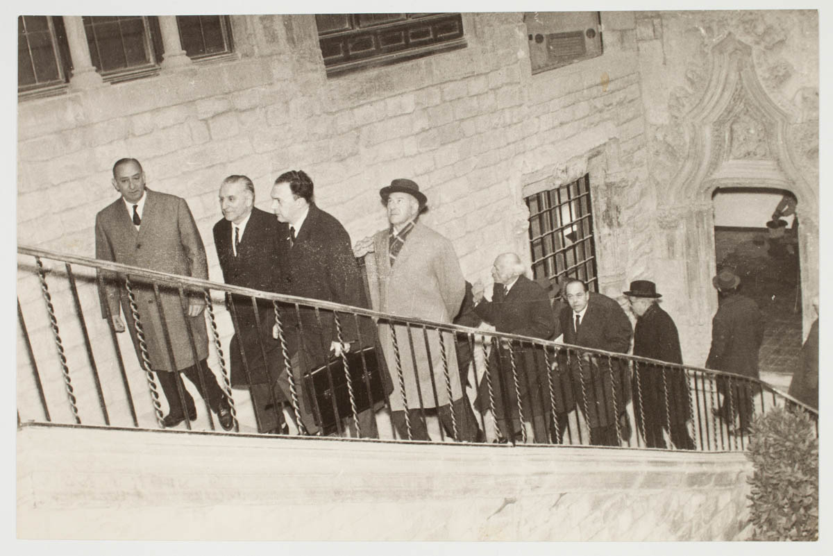 Palau Berenguer d’Aguilar: visita de Jaume Sabartés, Catherine Hutin, filla de Jacqueline Picasso, i la família Gaspar. 1962. Fons Jaume Sabartés. Fons documental del Museu Picasso, Barcelona. Foto: Desconegut.