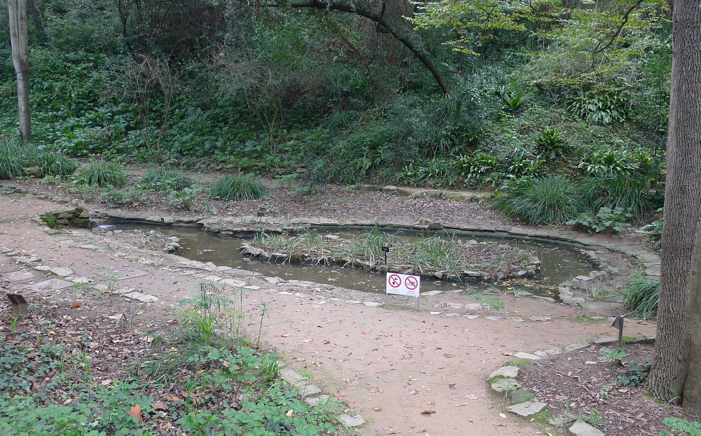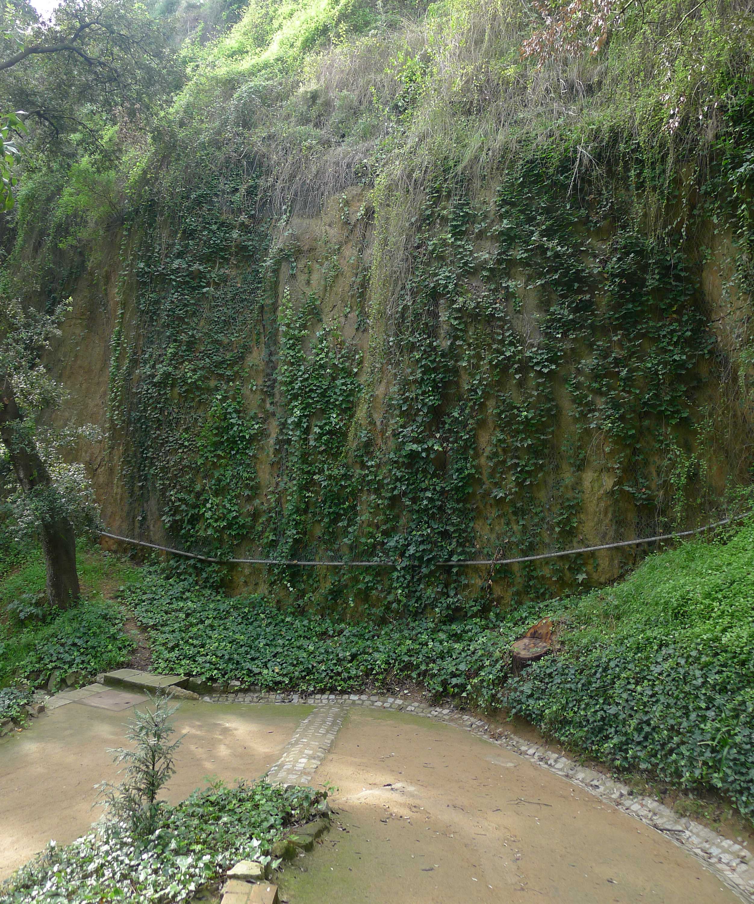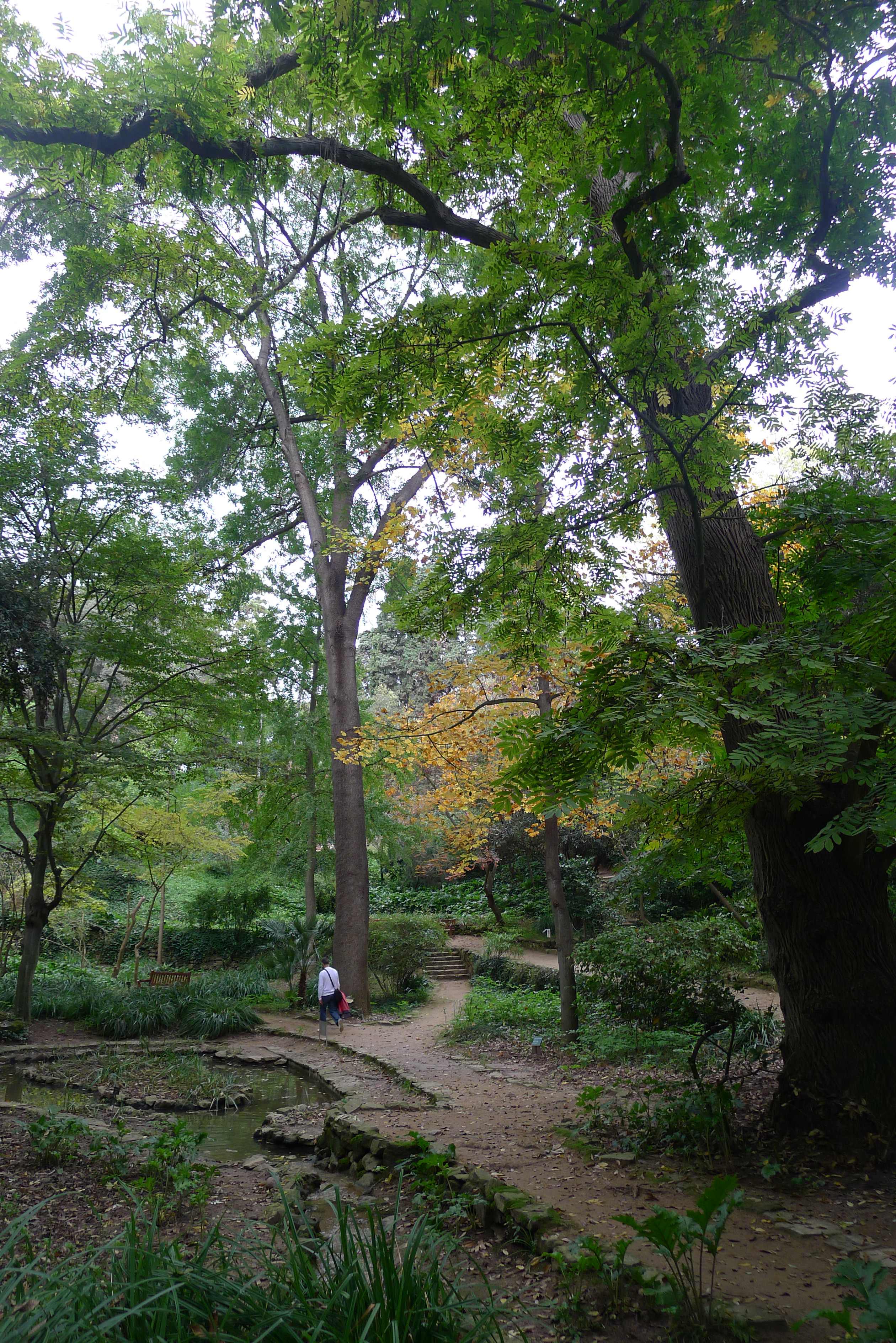 Tornem, però al Jardí Botànic Històric. Quan hi entrem, des de l’avinguda dels Montanyans, darrera mateix del Museu Nacional d’Art de Catalunya, el MNAC, ens trobem una mena de plaça enjardinada, a mà dreta, i una mena de túnel a l’esquerra. A la dreta hi ha el clot més profund, conegut com a Sot de l’Estany, que és el que té més importància botànica. A la dreta, el túnel que hi ha permet passar sota un parell d’escales mecàniques de les que pugen cap a l’Estadi Olímpic, i porta cap al que es coneix com a Sot de la Masia.
