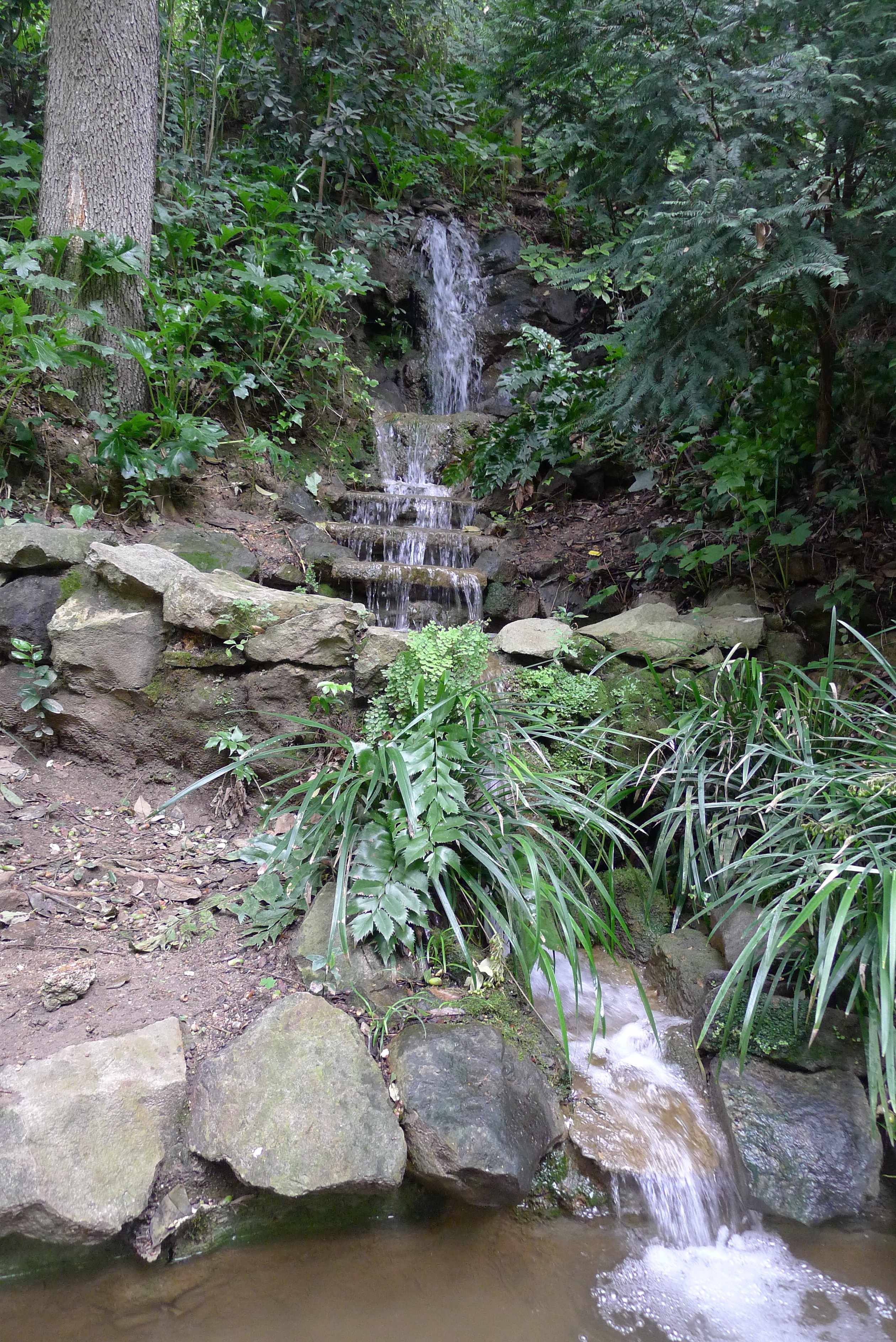 En aquest sector del jardí hi ha falgueres i altres plantes pròpies de llocs humits, com la cua de cavall. També hi trobem una zingiberàcia originària de Nova Zelanda. Una mica més amunt hi trobem un grup de margallons i alguns cedres de l’Atles. Al jardí hi viu també una gran liana, que va ser plantada pel Pius Font i Quer a la dècada de 1930 i que ja ha fet caure tres grans pins.