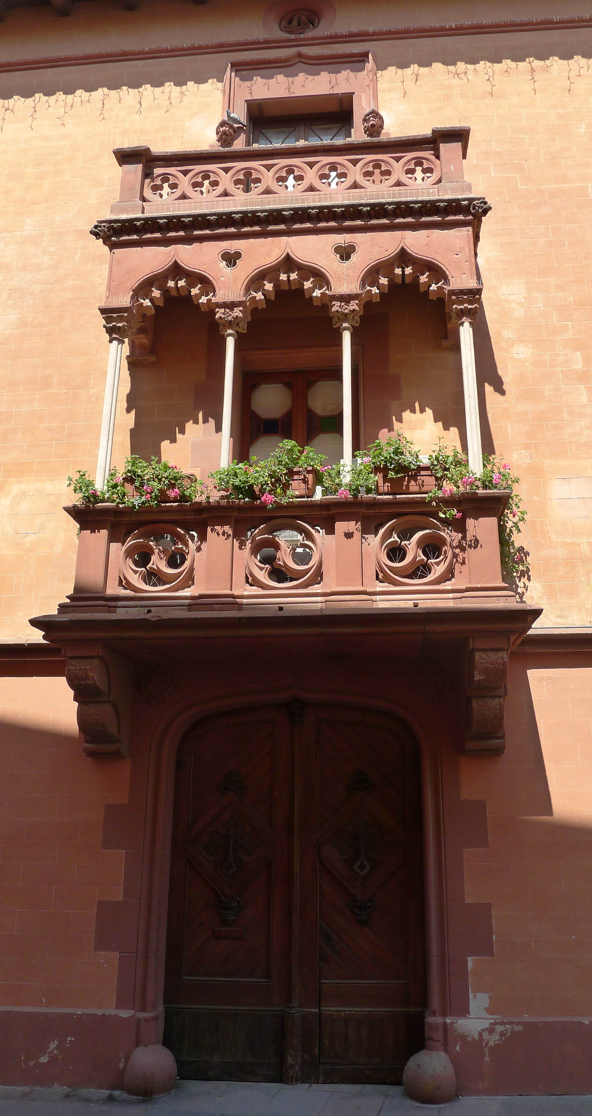 El tercer edifici és la Torre Roja, la qual, actualment, també és seu de dependències municipals, en aquest cas de l’Àrea de Planificació Territorial. És una antiga fortificació medieval que feia funcions de defensa i de talaia. Igual que la Torre del baró, depenia del castell d’Eramprunyà i el nom li ve del color vermell característic de les pedres d’aquesta zona. L’aspecte actual és d’una torre fortificada central, de planta quadrada, amb quatre pisos d’alçada i rematada amb merlets i un matacà, que és del segle XIII. La porta d’entrada és d’arc de punt rodó. Té diverses finestres gòtiques, entre les quals destaca, a l’alçada del primer pis, una bonica finestra coronella amb tres arcs. Té dos edificis laterals, que foren afegits en el tombant del segle XIX al XX i estan rematats amb merlets. Antigament havia estat denominada Torre Burguesa. El voltant està enjardinat.