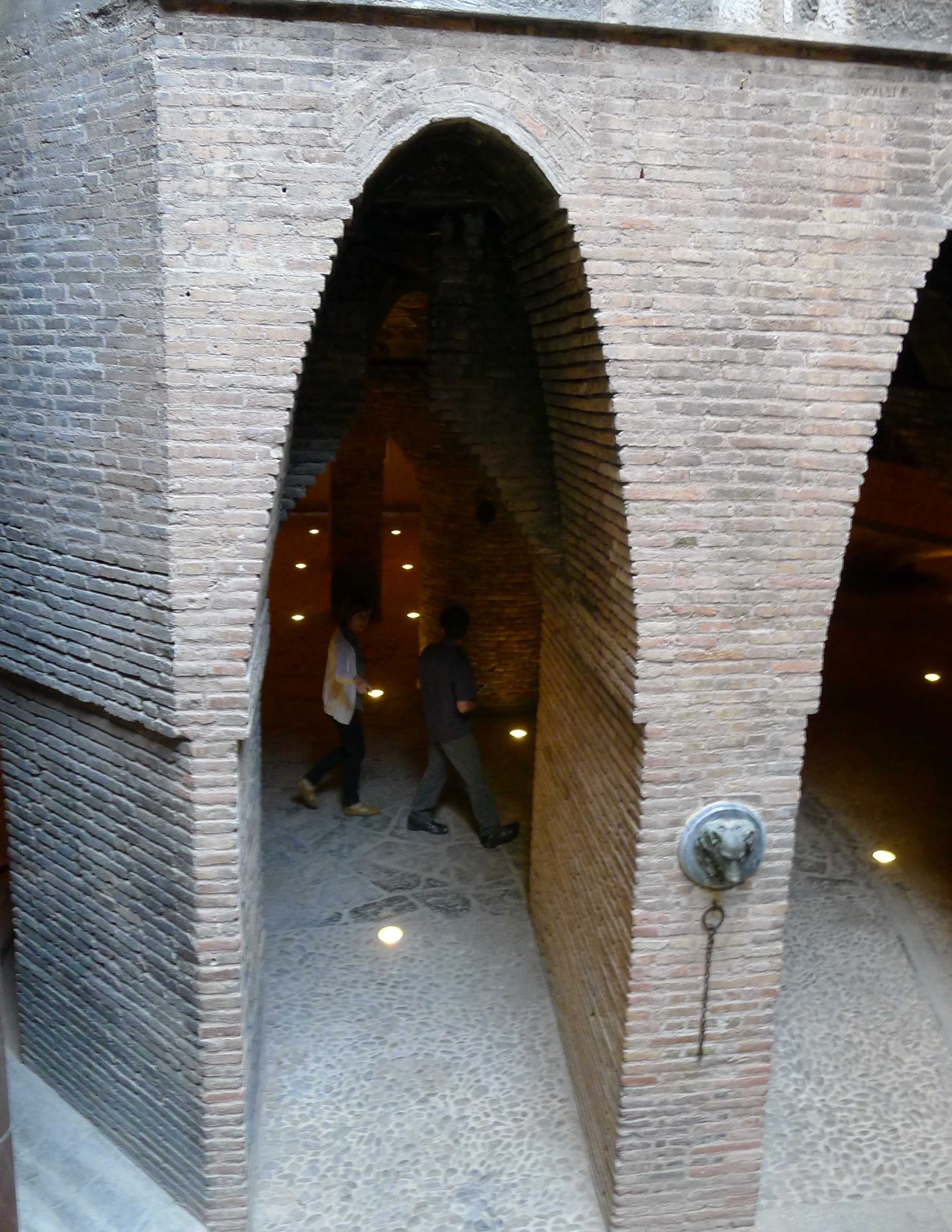 L’accés al soterrani, lloc on hi havia les cavallerisses, es fa per dues rampes, una d’estreta i amb forma helicoïdal, situada a l’espai central. A l’altra s’hi accedeix des del fons de la planta. A la part final hi té, al damunt, un espai obert de més de quinze metres d’alçada que permet mantenir ventilat l’espai i l’entrada de llum natural. Aquesta planta està feta només amb maó vist. Les voltes del sostre son sostingudes per unes àmplies columnes amb capitells en forma de bolet. I, com és habitual en les obres dels grans arquitectes modernistes, fins l’últim detall està pensat: les anelles per lligar els cavalls estan treballades.