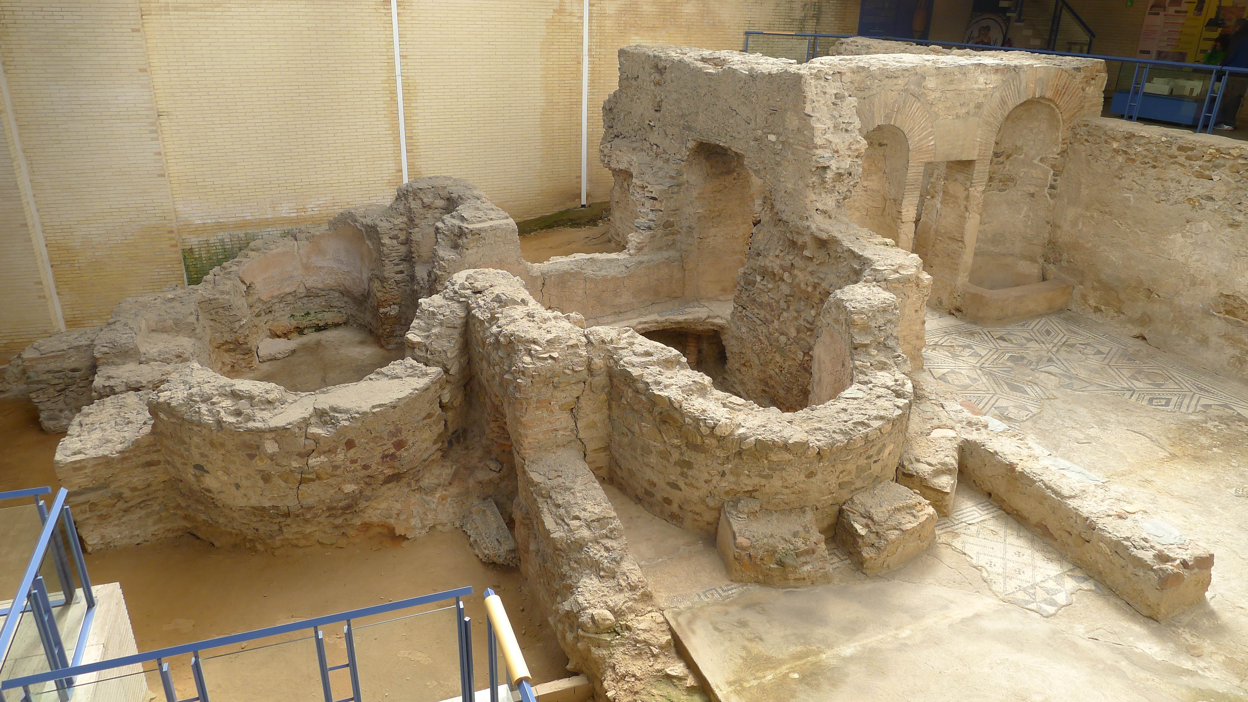Parem-nos un moment a veure com usaven les termes els romans. S’entrava primer a l’apodyterium, és a dir, el vestidor, on els banyistes es despullaven i es posaven una peça de roba subjectada a la cintura i es posaven una mena de sabatilles de fusta. Un cop preparats, entraven al tepidarium, o sala tèbia, per aclimatar el cos a la temperatura –hi havia entre 25 i 30 graus i una humitat baixa-, mentre s’untaven el cos amb olis perfumats. Després passaven a la sauna o sudatorium, on es deixava córrer aigua sobre el terra escalfat per aconseguir un  ambient humit a uns 80 graus, d’aquesta manera es feia transpirar el cos. Des d’aquí s’anava al caldarium, on hi es feia el bany amb aigua calenta, a gairebé 40 graus, en una estança a un 80% d’humitat i una temperatura ambient de 55º. En cas de necessitat, el usuaris podien  refrescar-se en una pica amb aigua freda. En aquest àmbit humit i càlid els banyistes es netejaven el cos tot gratant-se la pell amb objectes de bronze. El darrer pas era el frigidarium, on l’ambient més fresc ajudava a tancar els porus de la pell.