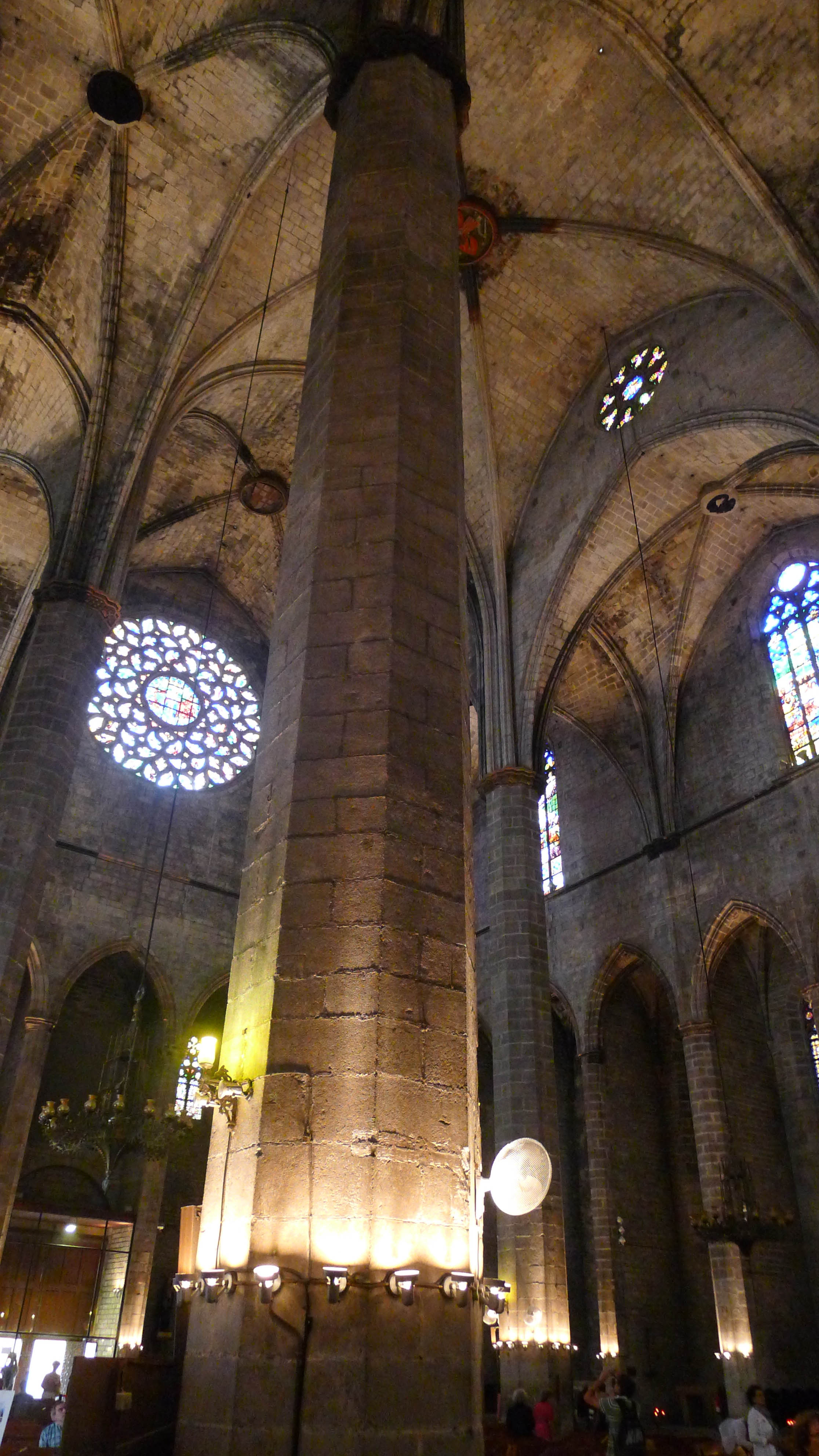 En general, l’arquitectura de Santa Maria del Mar és molt austera, tant a l’exterior, com a l’interior, això, però, no li treu ni un bri de bellesa, ben al contrari, l’engrandeix. Vegem la descripció que en fan Eduard Carbonell i Alexandre Cirici al llibre Grans monuments romànics i gòtics editat per La Caixa l’any 1977: “la sensació d’espai és extraordinària, no sols perquè les tres naus són tan iguals sino perquè els pilars, com columnes, són tan separats, a quinze metres uns dels altres, fet sense precedents a tot Europa”.