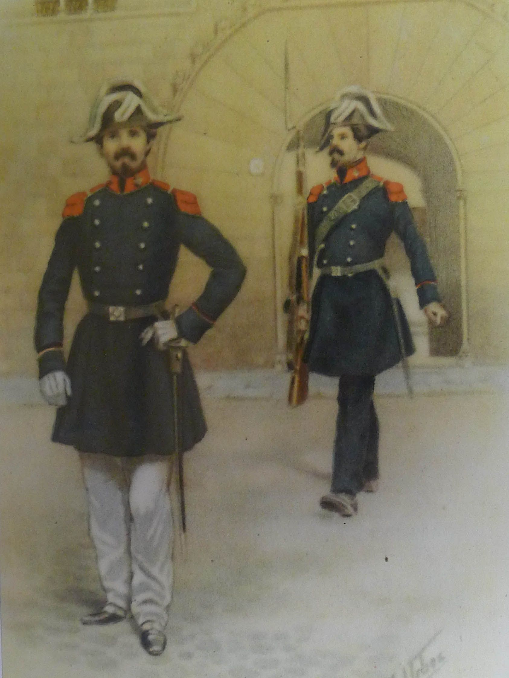 Dibuix de guàrdia muntada amb uniforme de diari d’hivern. Any 1864.