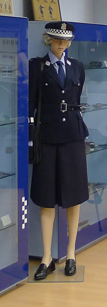 Uniforme de dona. Els primers eren amb faldilla. Ara ja són amb pantalons.
