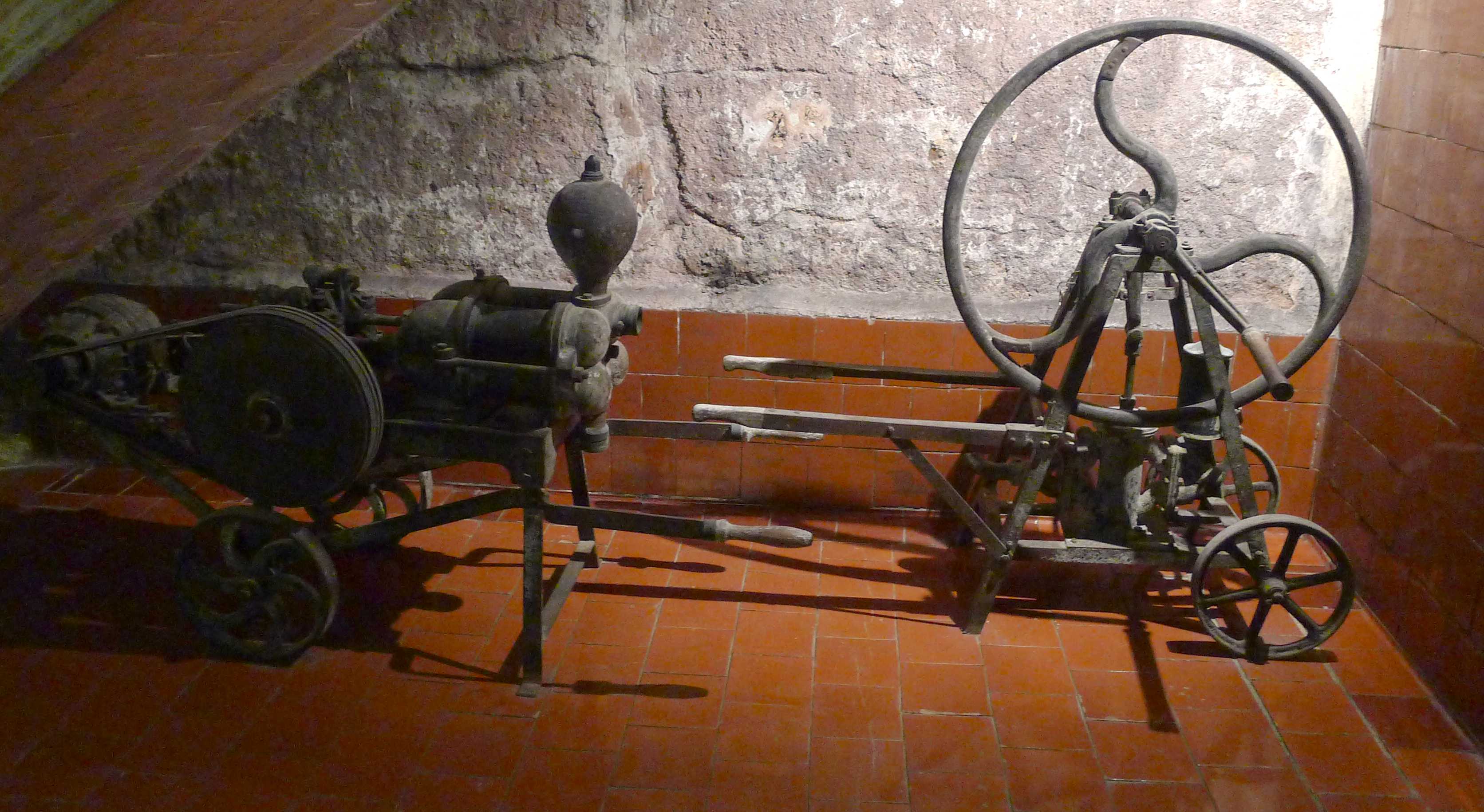 La mostra també explica la diferència entre cup i tina, el nom que reben els grans recipients on s’elabora i s’emmagatzema el vi. El recipient s’anomena cup quan està soterrat i tina quan és exterior o elevat. La seva funció principal és facilitar la fermentació del most i aconseguir que es faci en les millors condicions. Era habitual que les parets dels cups estiguessin revestides d’unes rajoles envernissades que s’anomenen cairons.