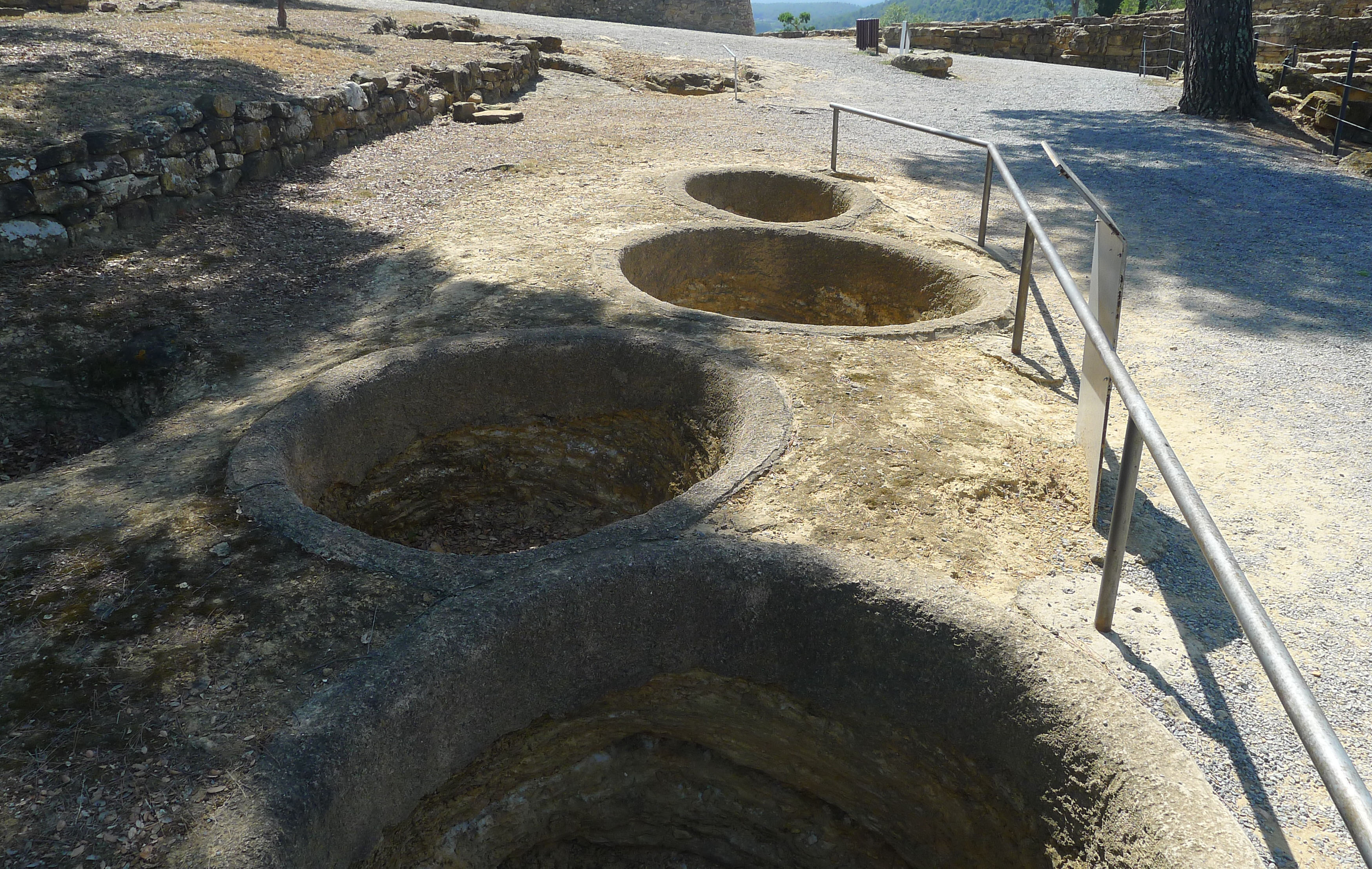Quan entrem al museu, podrem veure com van influir grecs i romans en la cultura indigeta i en els habitants d’Ullastret. Abans, però, seguim amb la nostra passejada pel poblat. Entremig dels carrers A i B, però a l’altre cantó del carrer 1, hi trobem els carrers C i D que avui dia estan units fent una mena d’essa. En aquesta zona hi podem veure més dipòsits d’aigua tallats a la roca i sitges per a emmagatzemar cereals. Les feien també tallades a la roca i les revestien amb argila i palla i les tapaven amb fang. A Ullastret se n’han trobat unes 230. El carrer D transcorre al costat d’un barri de cases adossades a la muralla i es pot veure un desguàs obert a la muralla. Aquest és el carrer més llarg perquè segueix en paral·lel un bon tram de la muralla. Tot i això, la major part queda fóra de la zona visitable, perquè encara hi ha una gran àrea del jaciment que segueix excavant-se i estudiant-se.