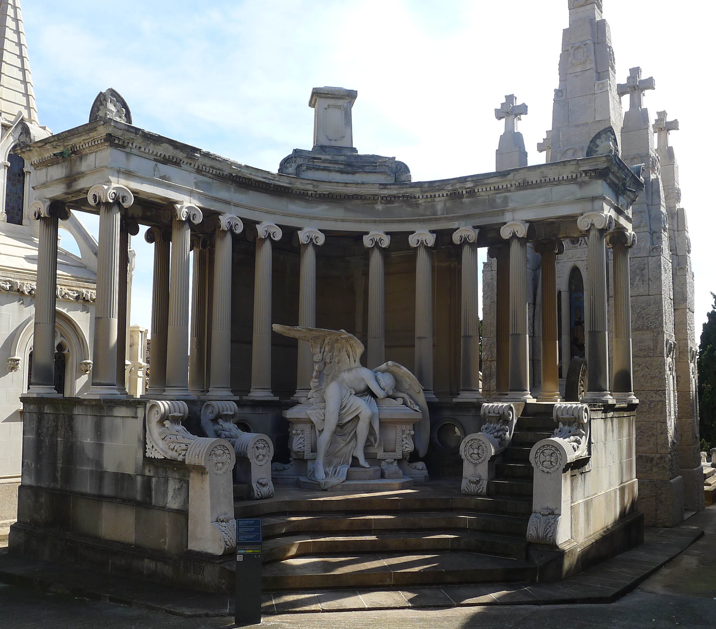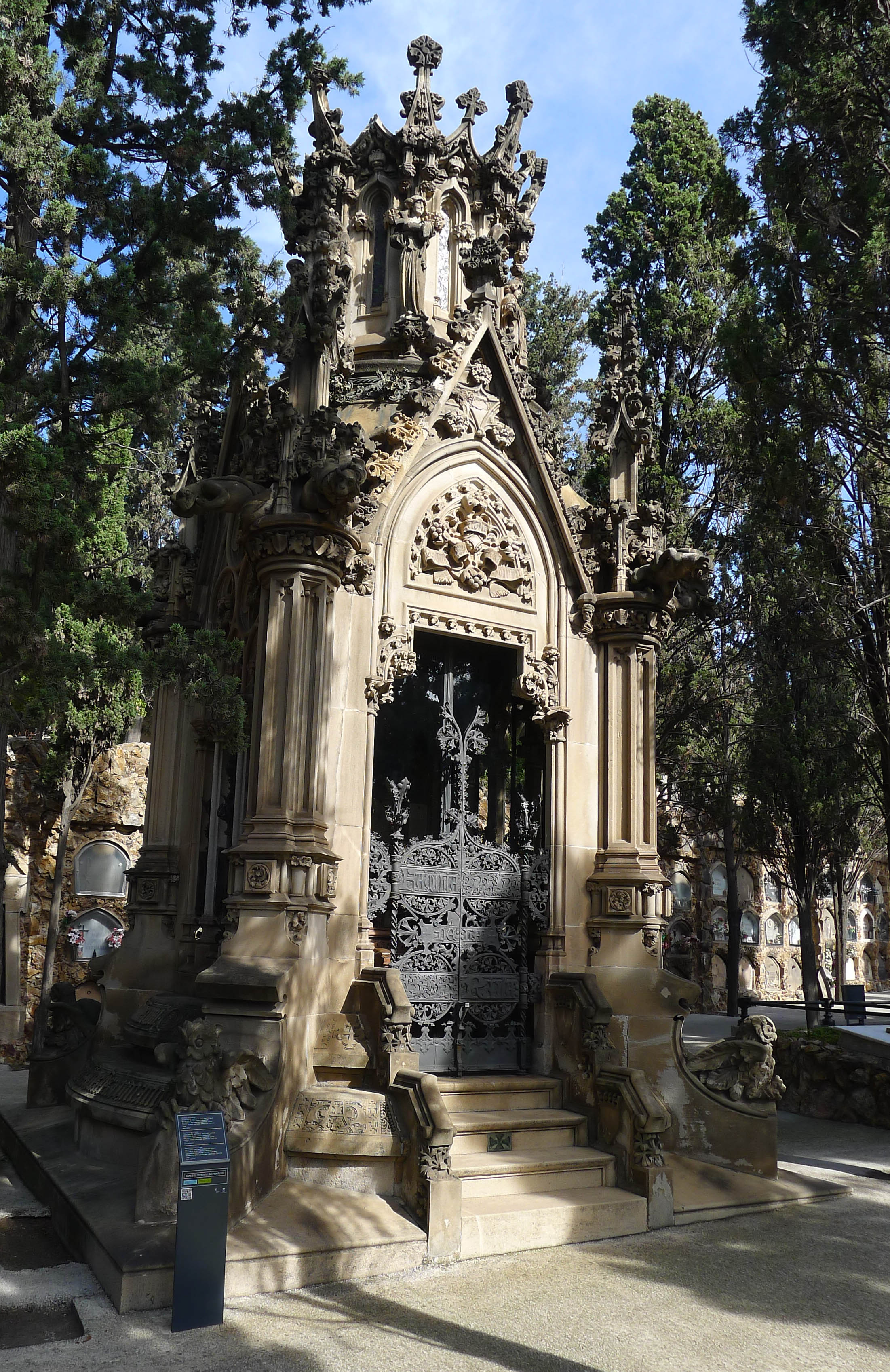 Tot i que hi ha cognoms coneguts, els mausoleus més vistosos no sempre són de personatges il·lustres, tot i que ben segur que son de persones amb força diners. Entre els panteons més sumptuosos hi ha el de la família Amatller, els de les xocolates. És, de fet, una ermita neoromànica ideada per mossèn Josep Gudiol i construïda per l’arquitecte Emili Sala Cortés entre 1911 i 1915. Es van utilitzar 150 m3 de carreus de pedra. Si els Amatller es van decantar pel romànic, el panteó de la Riva és estil neogòtic. Aquesta família va decidir convocar un concurs de projectes per decidir el seu panteó. Va guanyar-lo Antoni Maria Gallissà, que va comptar amb la col·laboració d’escultors com Eusebi Arnau i els germans Juyol, que havien treballat amb Lluís Domènech i Montaner i amb Josep Puig i Cadafalch. Aquest panteó va aixecar-se entre 1892 i 1895 i els diaris de l’època se’n van fer ressò. I és que alguns d’aquests mausoleus són més grans que moltes ermites de poble.
