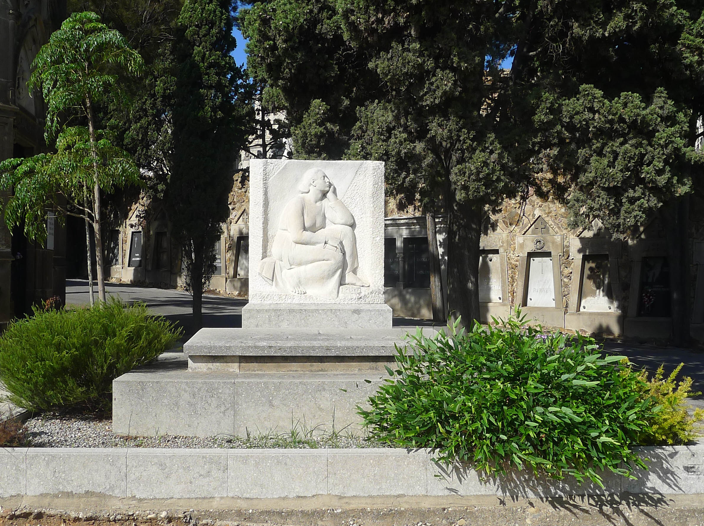 És evident que la manera com les persones s’enfronten a la mort és molt diversa. Així, trobem que la tomba de l’escultor Josep Clarà i Ayats és presidida per una escultura femenina feta per ell mateix. I en un dels punts més cèntrics del recinte monumental hi ha el mausoleu de Leandre Albareda, l’arquitecte municipal que va dissenyar el cementiri. Tot i que és molt gran i vistós, ara podem dir que es perd una mica entre les nombroses tombes de l’entorn, però és ben segur que en la seva època havia de destacar i molt; en canvi, la tomba de l’alcalde que va impulsar el cementiri, Rius i Taulet, és molt menys sumptuosa i pot arribar a passar desapercebuda.