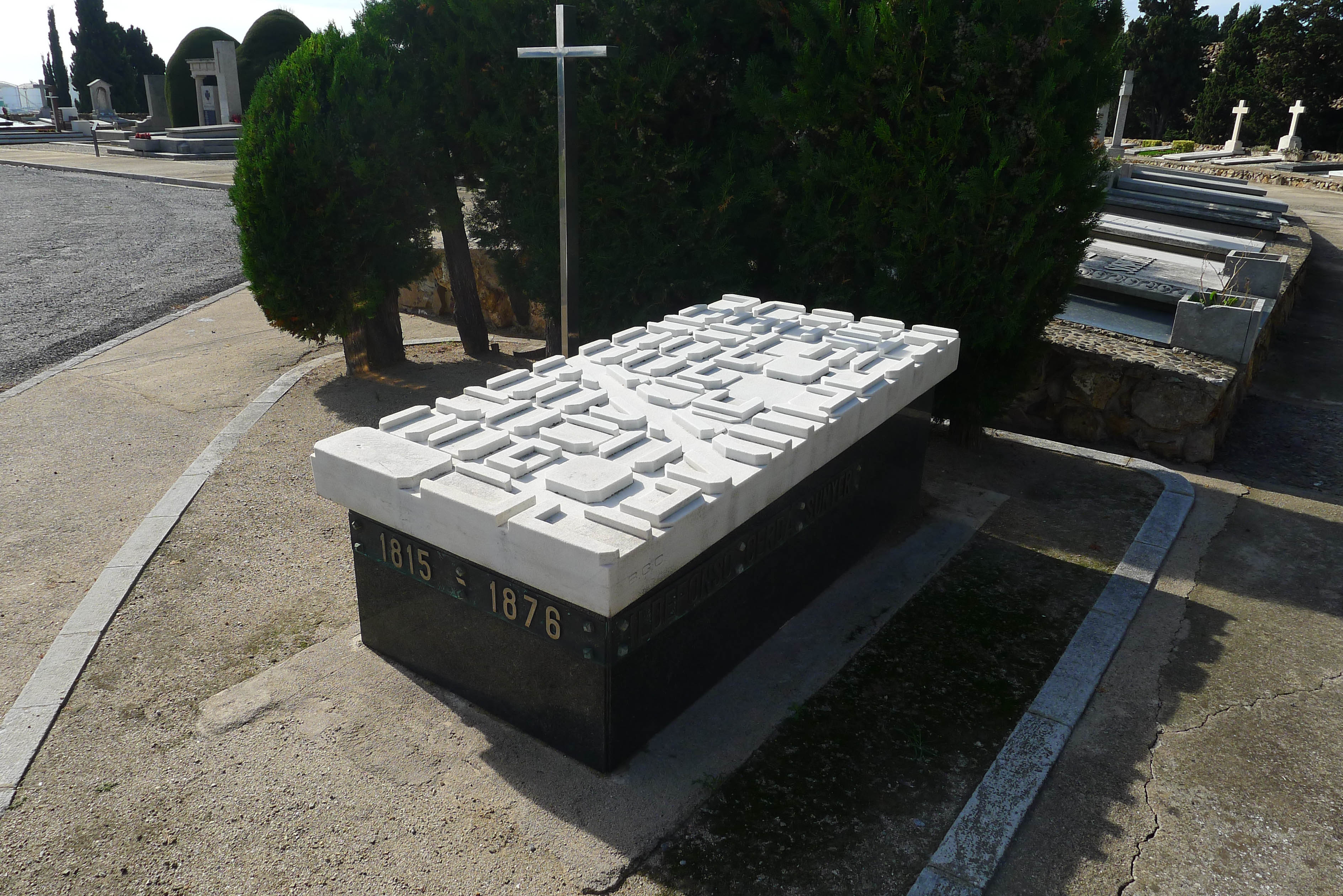 Tot passejant pel cementiri de Montjuïc, ens podem adonar que la sumptuositat d’una tomba no va sempre relacionada amb el renom que la persona hagi tingut en vida i a més, es poden trobar alguns coincidències curioses. Així, hi ha personatges que van estar junts en vida i que reposen ben a prop, com Herta Frankel i Artur Kaps; però també n’hi ha que van tenir característiques vitals ben diferents i que estan en un espai proper. Aquest és el cas de quatre polítics: dos alcaldes franquistes com José Maria de Porcioles i Joaquim Viola; Rafael Campalans, que dóna nom a una fundació del PSC; i el líder de la Lliga Regionalista, Francesc Cambó. Val a dir, que les tombes dels tres darrers són força discretes. A la de Porcioles, però, hi destaca l’escut de Barcelona. A la mateixa zona hi ha la tomba d’un altre personatge il·lustre i només veient-la ja sabem qui hi ha enterrat, perquè la llosa que la cobreix és una mena de maqueta en pedra de la trama de l’Eixample barceloní. Òbviament hi descansa Ildefons Cerdà.