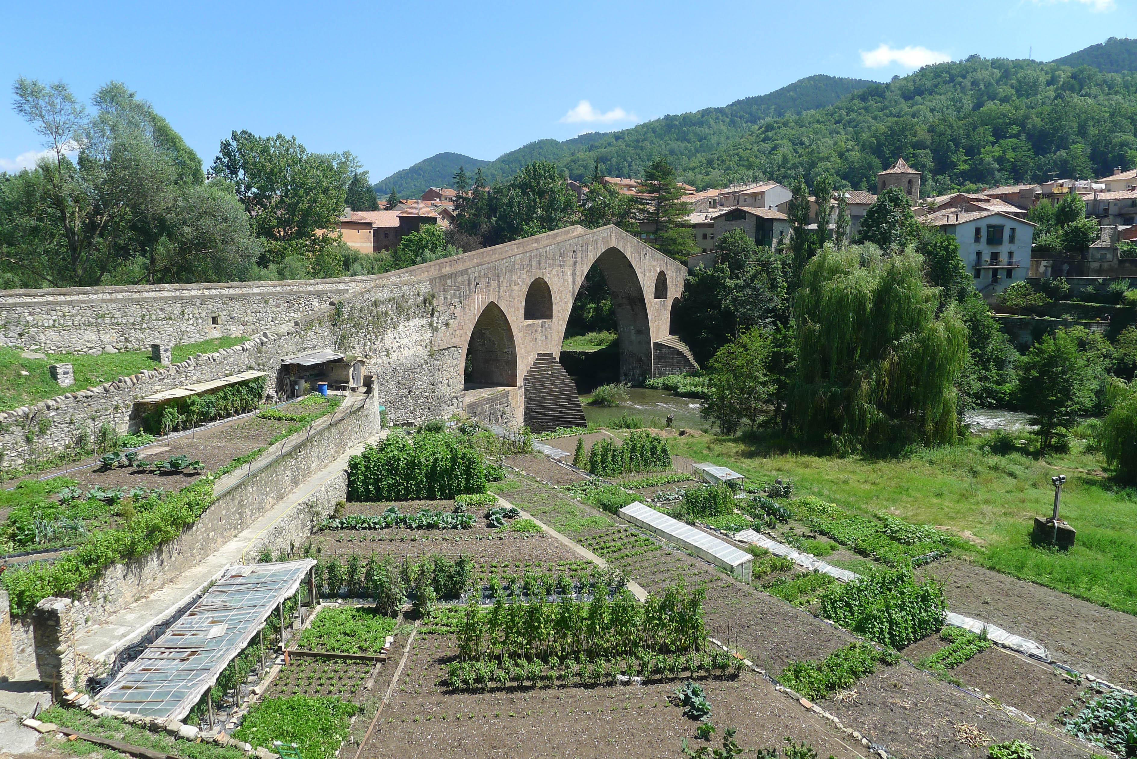 A més del monestir, el museu i el palau Abacial, Sant Joan de les Abadesses té altres atractius. A l’Oficina de Turisme, ubicada al mateix Centre d’Interpretació del Mite del Comte Arnau, us facilitaran un plànol amb dos itineraris, senyalitzats per altra banda amb uns plafons indicatius, a partir dels quals podeu passejar per la població tot descobrint l’església de Sant Pol, que ja hem citat, la plaça Major o el pont Vell construït sobre el riu Ter el 1138 i refet en estil gòtic després del terratrèmol de 1428. Un tram està fet amb pedres del pont original del segle XII. També hi ha la casa on estiuejà el poeta Joan Maragall i l’estudi de l’escultor Francesc Fajula, que ha treballat en la reforma i ampliació del cementiri del monestir de Santa Maria de Bellpuig de les Avellanes i que ha fet el Crist del presbiteri de la Sagrada Família.