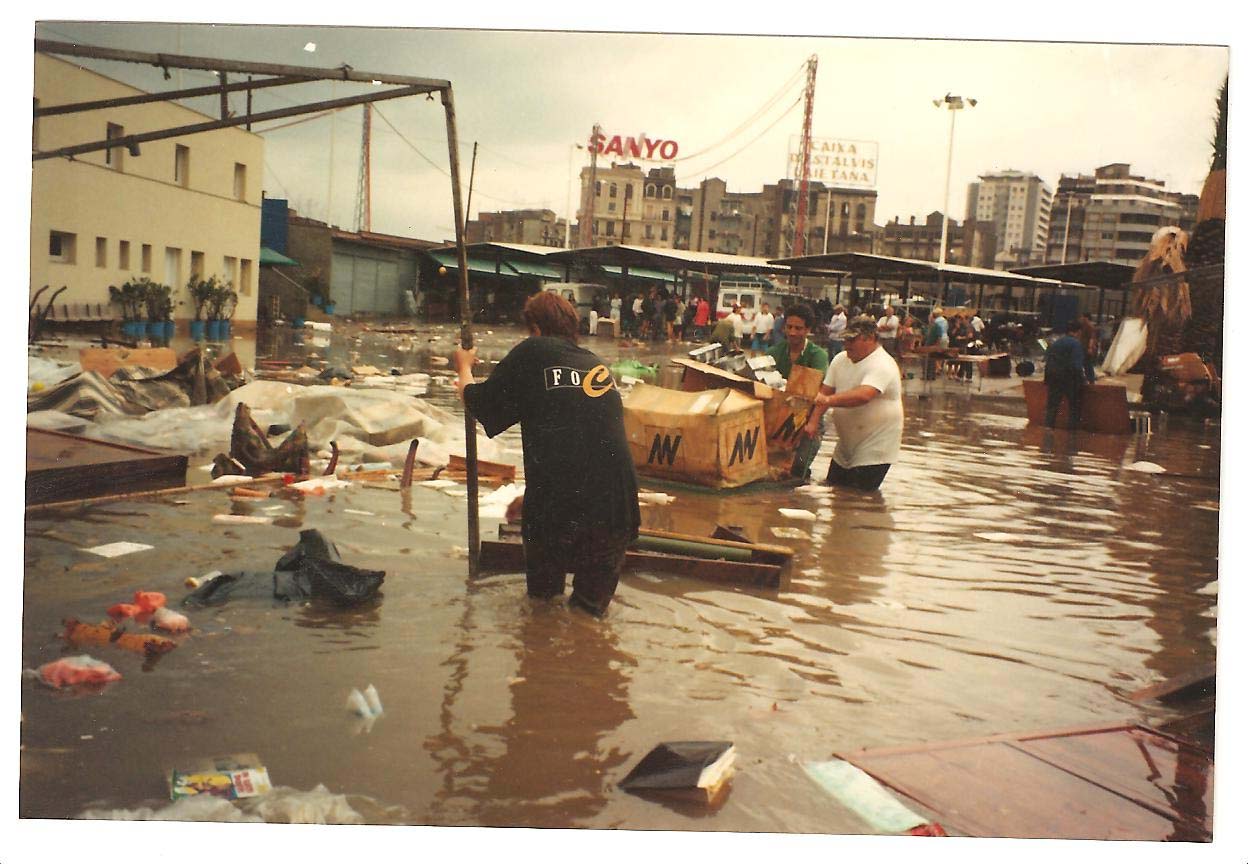 La nova ubicació a les Glòries era provisional, una provisionalitat que ha durat gairebé 90 anys i que ha provocat tota mena de situacions, algunes de les quals prou dramàtiques, perquè l’aigua i el foc han estat més presents del compte. Ja l’any 1913, quan encara eren als entorns del Mercat de Sant Antoni, hi va haver un important incendi. Va afectar diverses parades i algunes barraques on hi vivien famílies de paradistes. El foc va tornar a visitar els Encants, ara ja a la plaça de les Glòries, en un parell d’ocasions, els anys 1964 i 1981, sempre amb danys importants a causa de la precarietat de les instal·lacions i de les parades. L’aigua també ha volgut ser present en la vida dels encantistes, que han vist com s’inundava el recinte en més d’una ocasió els anys 1976, 1989 i 1995.
