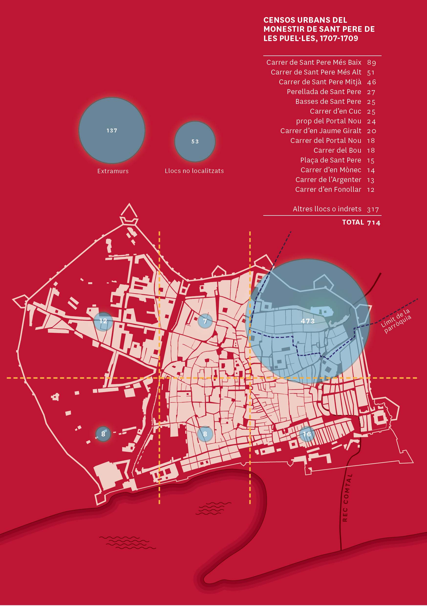 Els monestirs i els edificis que els envoltaven van quedar molt malmesos durant el setge i l’atac final del 1714, que es va produir, precisament per aquest sector de la muralla. De fet, el conseller en cap, Rafael Casanova, va ser ferit a la zona del baluard de Sant Pere. A més, Santa Clara va quedar en la zona que l’administració borbònica va fer enderrocar per a construir la ciutadella militar que havia de vigilar la ciutat durant més d’un segle. Per això, les religioses van haver de buscar un lloc alternatiu que finalment trobaren a l’antic Palau Reial Major, una part del qual és avui el Museu Marés, incloent-hi la sala del Borboll, que nosaltres coneixem amb el nom de saló del Tinell.