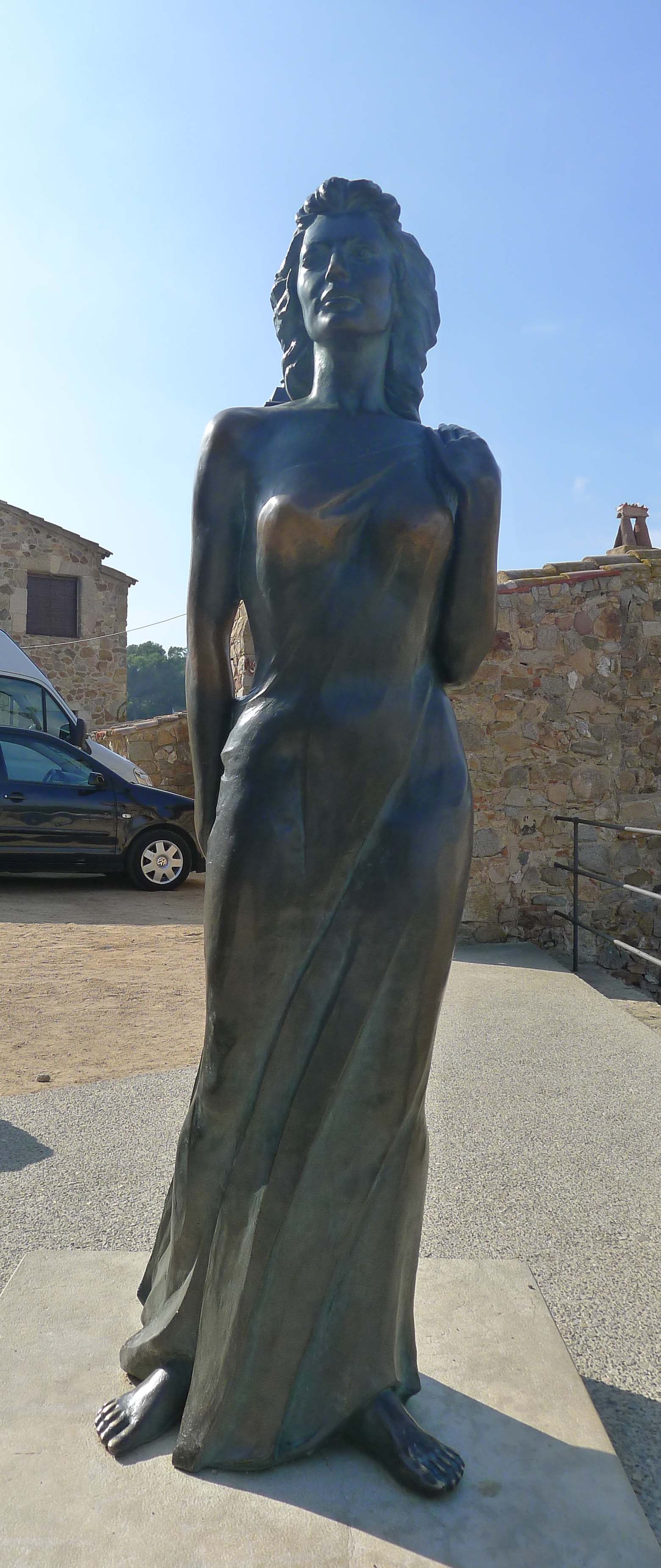 De pujada també haurem pogut veure una estàtua que representa l’actriu Ava Gardner, que com hem dit al principi va rodar aquí part de la pel·lícula Pandora i l’holandès errant del director Albert Lewin. En tot cas, la pel·lícula és el de menys, el fet destacable va ser el xoc social que va suposar la presència a la població, en ple franquisme, d’una persona com Ava Gardner, força alliberada per l’època, que ja havia tingut un bon grapat de relacions amoroses i que estava casada aleshores amb Frank Sinatra. Es diu que va tenir una relació amb l’actor i torero català Mario Cabré, que també participava a la pel·lícula, fet que va provocar que Sinatra volés ràpidament cap a Tossa. A més, recordem que l’actriu era coneguda com “l’animal més bell del món”. Sigui com sigui, tot plegat va donar molta publicitat a la població. A més de l’estàtua d’Ava Garner, hi ha onze escultures més repartides per l’espai públic de Tossa de Mar.