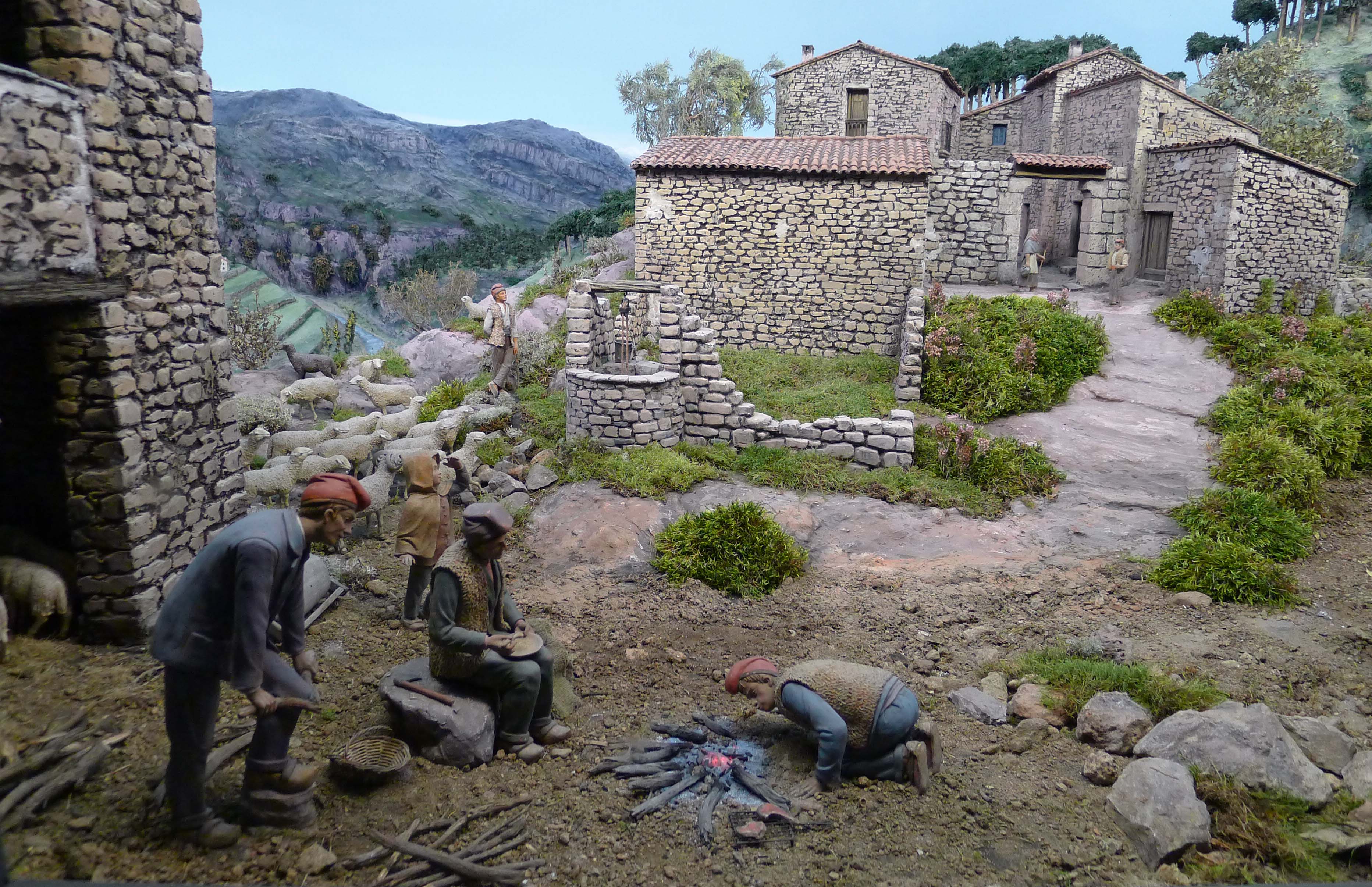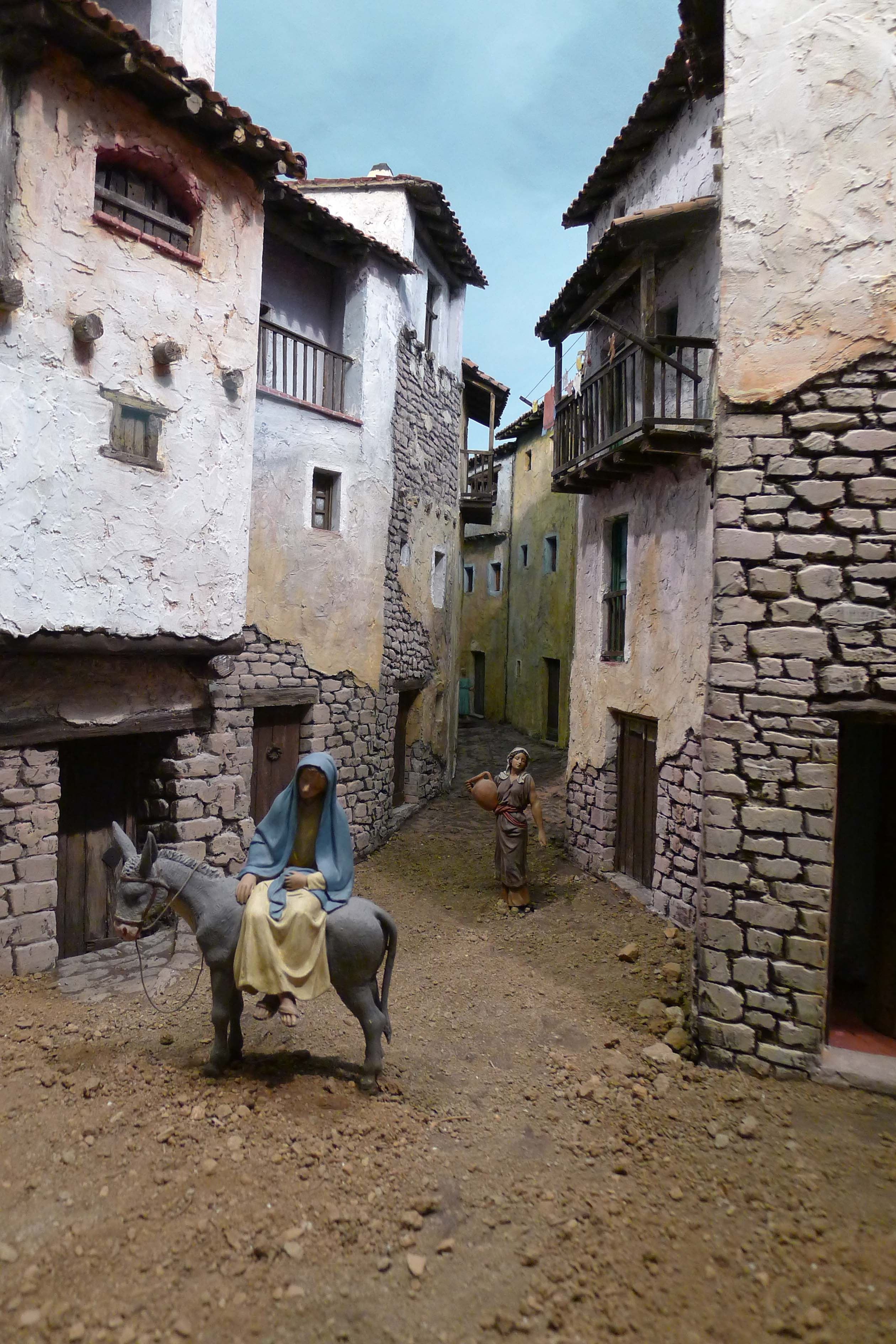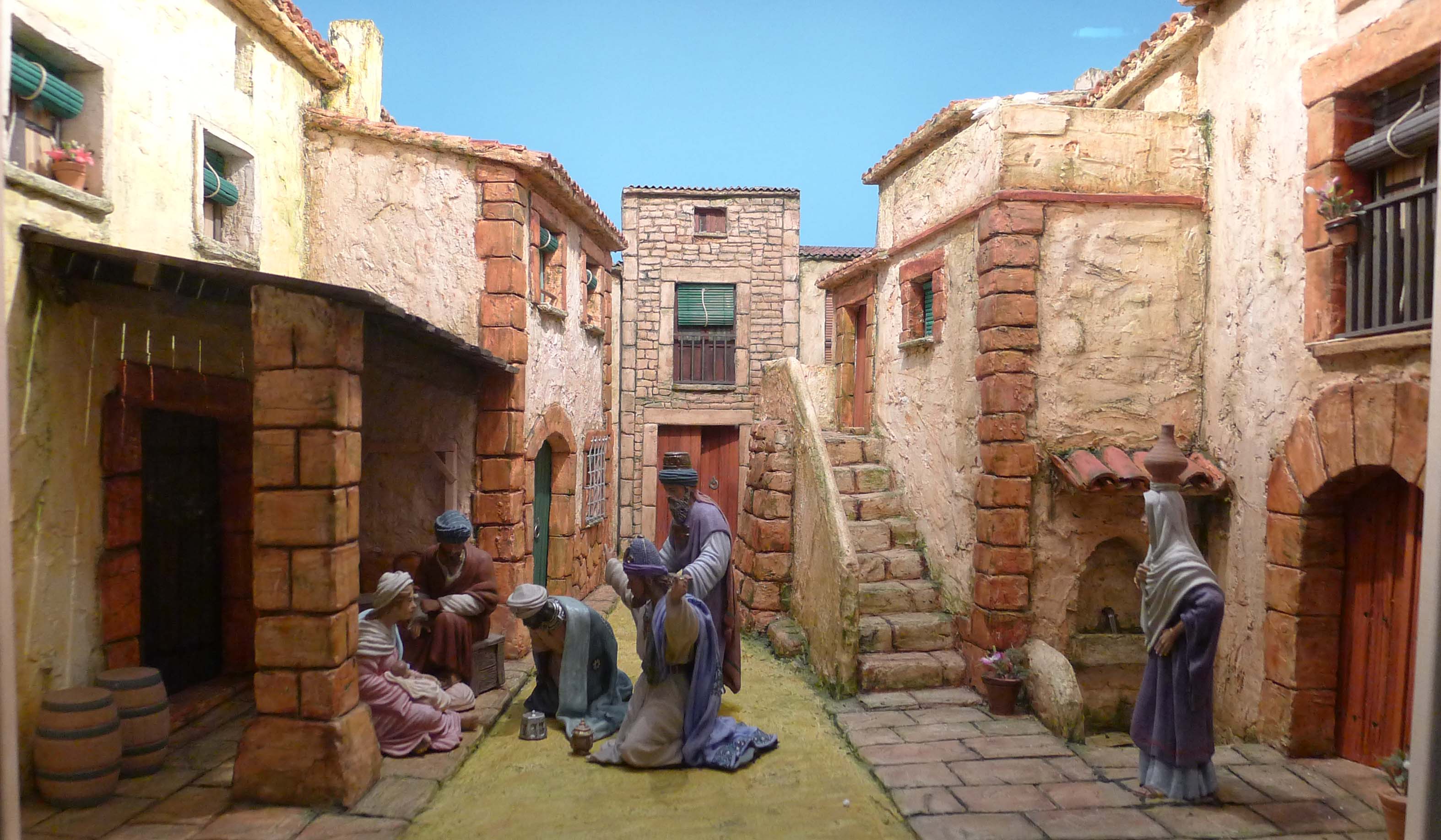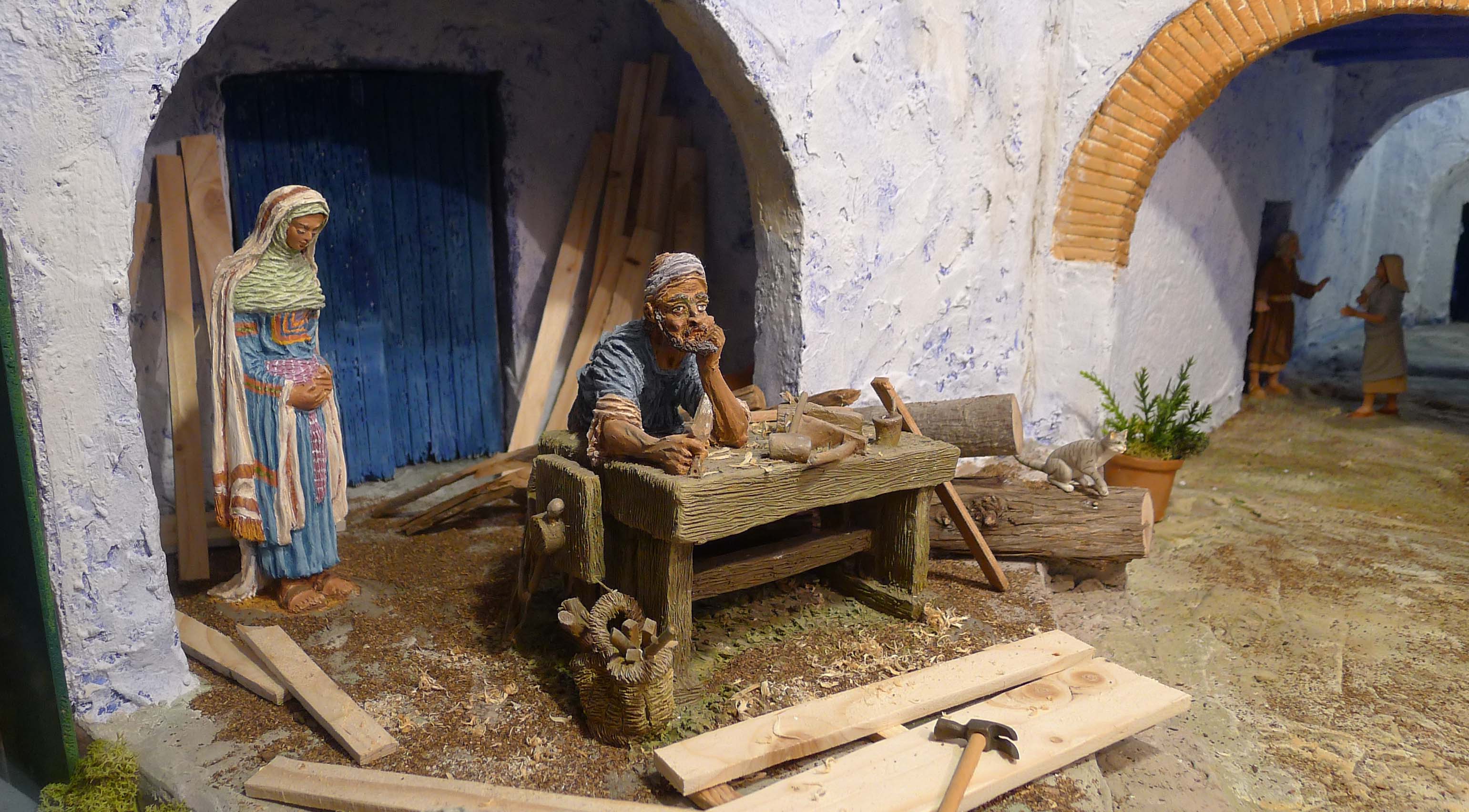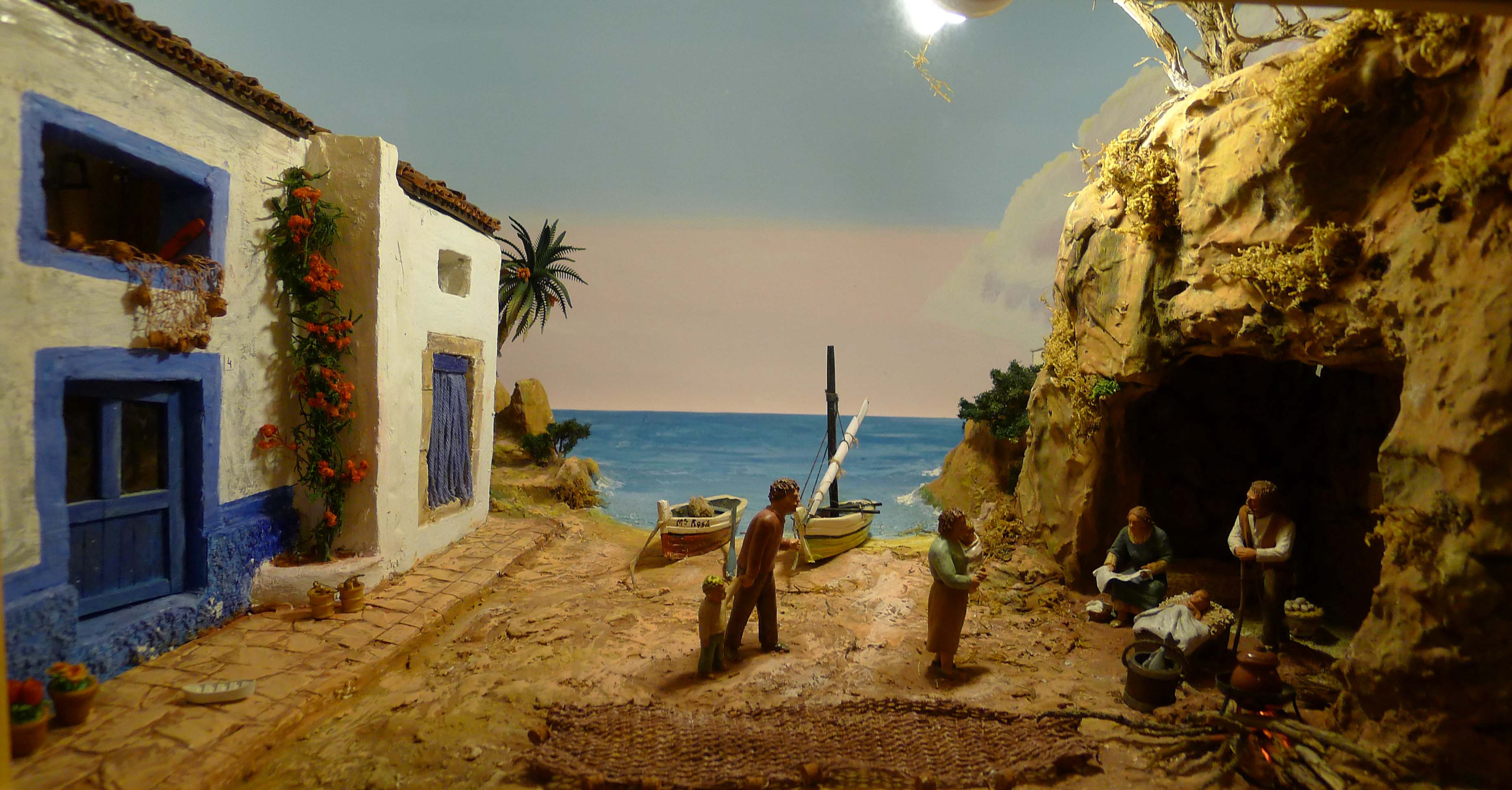 Les escenes que podem veure són d’allò més variades i algunes són molt detallistes. Al carrer Lledó n’hi ha un que representa una escena familiar on podem veure fins i tot un calendari de paret o un exemplar del Calendari del Pagès damunt una taula. El naixement és una de les escenes més representades, però el lloc on les ubica cada pessebrista és d’allò més diferent. Hi podem trobar paisatges de muntanya que ens recorden poblets del Pirineu, però també n’hi ha que situen l’escena en un entorn marítim. Altres artistes, perquè cal dir que hi ha autèntics artistes, es decanten per la fugida a Egipte i fins i tot reprodueixen un temple egipci amb pels i senyals. Alguns fan servir força la imaginació, com un pessebrista que ha triat una escena molt poc habitual: la Mare de Déu embarassada amb Sant Josep pensatiu recolzat sobre la taula de fuster. Ho podeu veure a la mostra del carrer de Lledó.