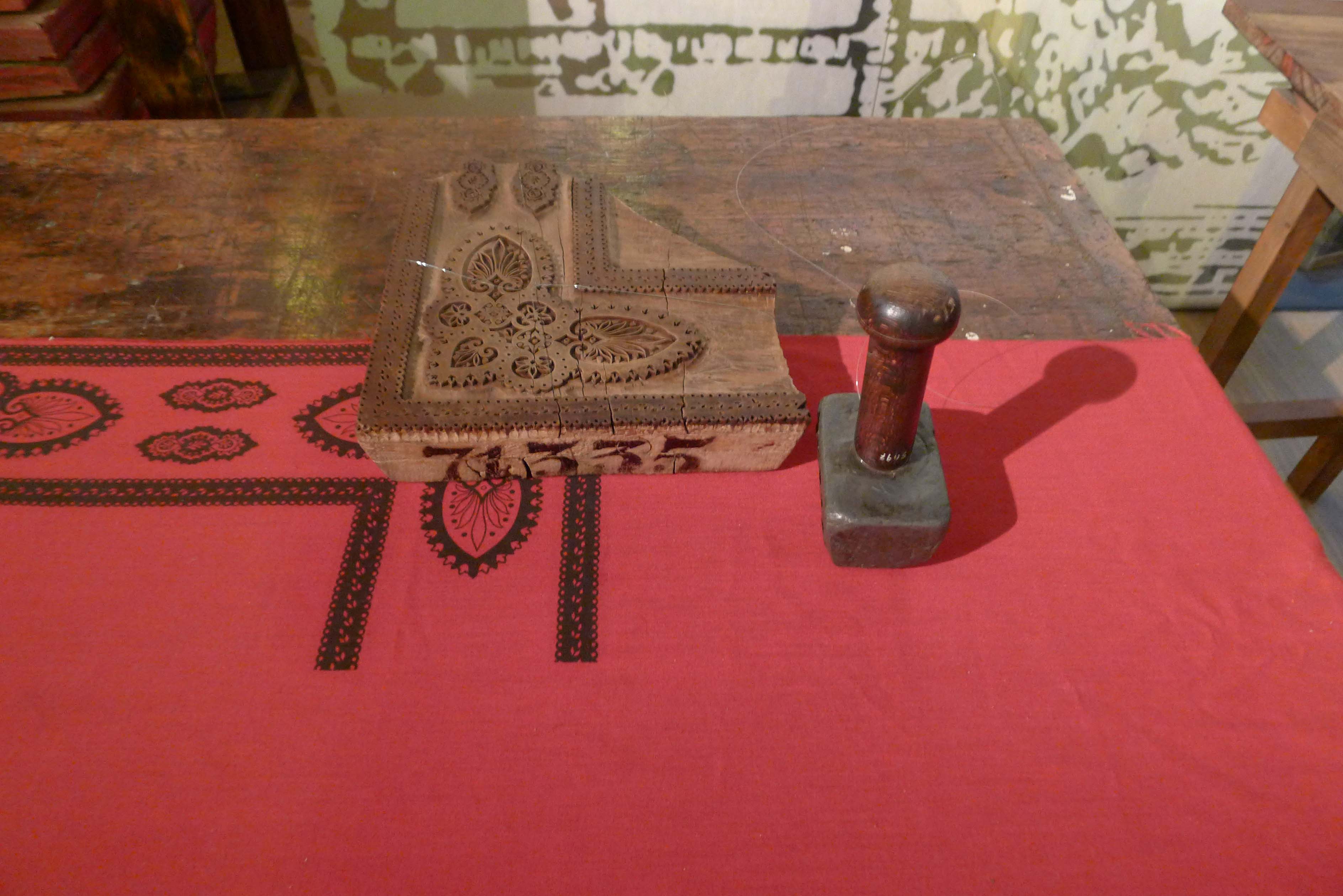 Ara que ja sabem com van arribar les indianes, com es va anar estenen per Europa, i com Catalunya va poder estar al capdavant de la producció europea, anem a conèixer els processos d’estampació. Al Museu podem saber que el primer sistema que s’utilitzava en l’estampació és el “bac” que rep el nom del recipient on hi ha el color que s’utilitzarà. Així explica com és aquest sistema la Gran Enciclopèdia Catalana: “L’estampació a mà o a bac és feta amb blocs o motlles de fusta, amb el dibuix en relleu, obtingut gravant la mateixa fusta o incrustant-hi uns perfils metàl·lics. Hom suca aquests motlles en el color escampat en el fons d’un recipient anomenat bac, i després són aplicats al teixit estès sobre una taula. Hom copeja el motlle amb una maça per transmetre el color al teixit. Per a cada color cal un motlle”. Òbviament és un procediment molt artesanal i, per tan, car i lent. A més, com podreu comprovar al Museu, la superfície de roba que es pot estampar és poca. Per tots aquests motius, actualment s’usa molt poc.