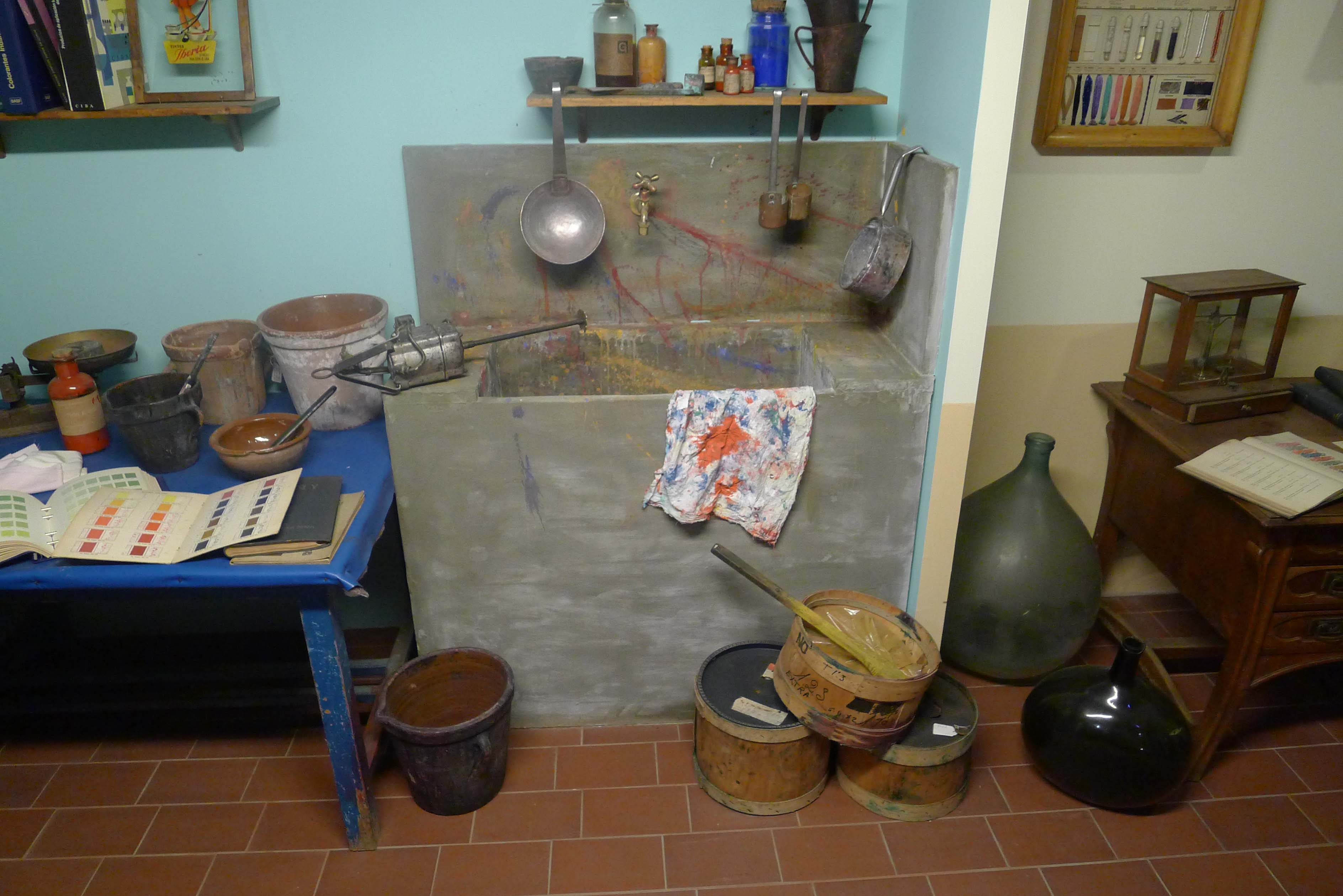 Vist això, no és d’estranyar que un dels oficis més bàsics en una fàbrica d’estampació fos el químic, que era qui obtenia els tints de diferents colors. Al Museu hi ha reproduït el despatx i laboratori d’un químic d’una fàbrica del primer terç del segle XX, amb mobiliari, eines i estris originals.