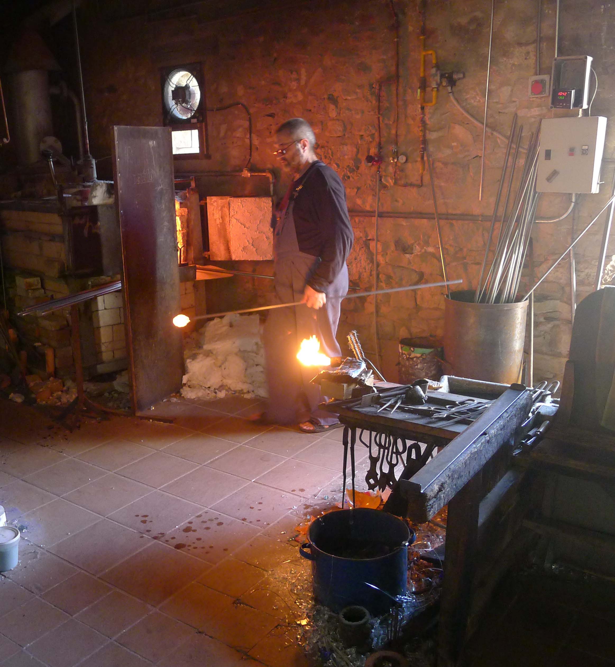 A la planta baixa, després de la recepció, hi ha el taller d’un mestre artesà vidrier, Paco Ramos, que treballa cara al públic i fa demostracions periòdiques de com es fa el vidre bufat. Cal dir que val la pena veure com utilitza una llarga barra metàl·lica per agafar una mena de bola roent de vidre fos del forn, que és sempre encès, i com, a poc a poc, ho va convertint en una peça de vidre: un gos, un gat, un setrill, un gerro o un “matrimoni”.