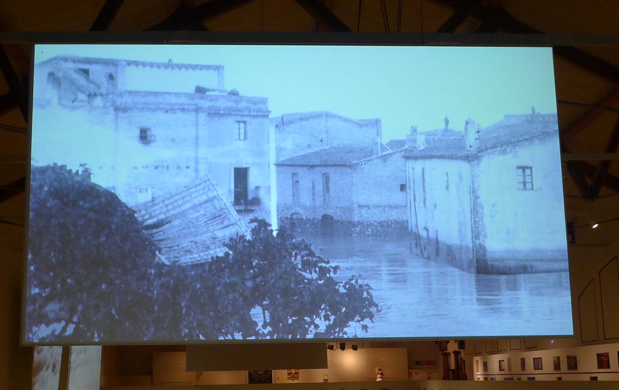 Com hem dit en iniciar la sortida, un d’aquests edificis amb història és el mateix museu, i no només pel seu contingut actual. L’edifici es si mateix ja justifica una sortida, perquè és l’antic escorxador de la ciutat, aixecat entre 1906 i 1908 per l’arquitecte Pau Motguió en terrenys guanyats a l’Ebre, el riu sempre present en la vida de Tortosa i dels tortosins. Tant present, que durant gran part de la història de la ciutat la negava periòdicament. De fet, al mateix museu es poden veure fotografies antigues amb els carrers plens d’aigua.