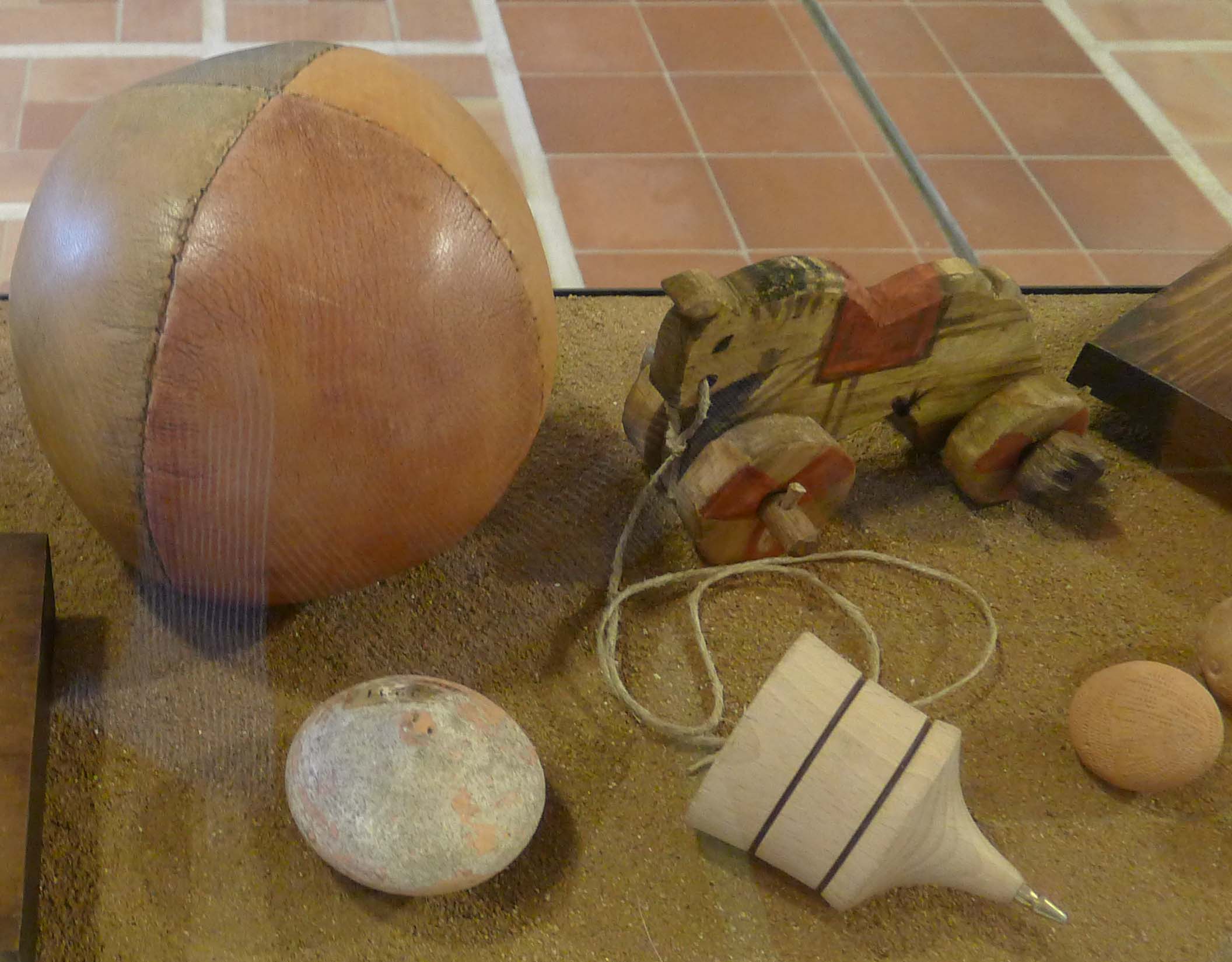 Sonalls, campanetes, nines –algunes d’articulades-, pilotes, animalets de fang, petites eines de camp o peces de vaixella, les tabes, nous per fer punteria, bales o el io-io, que, encara que no ens ho sembli, és un joc documentat a Grècia al segle V abans de la nostra era, o els escacs, un joc medieval del qual es va trobar a la col·legiata d’Àger un joc fet amb cristall de roca. Aquests i altres jocs i joguines estan explicats i alguns es poden veure a l’exposició que està fins al 16 d’octubre de 2016 a la seu del Museu Arqueològic de Catalunya a Ullastret.
