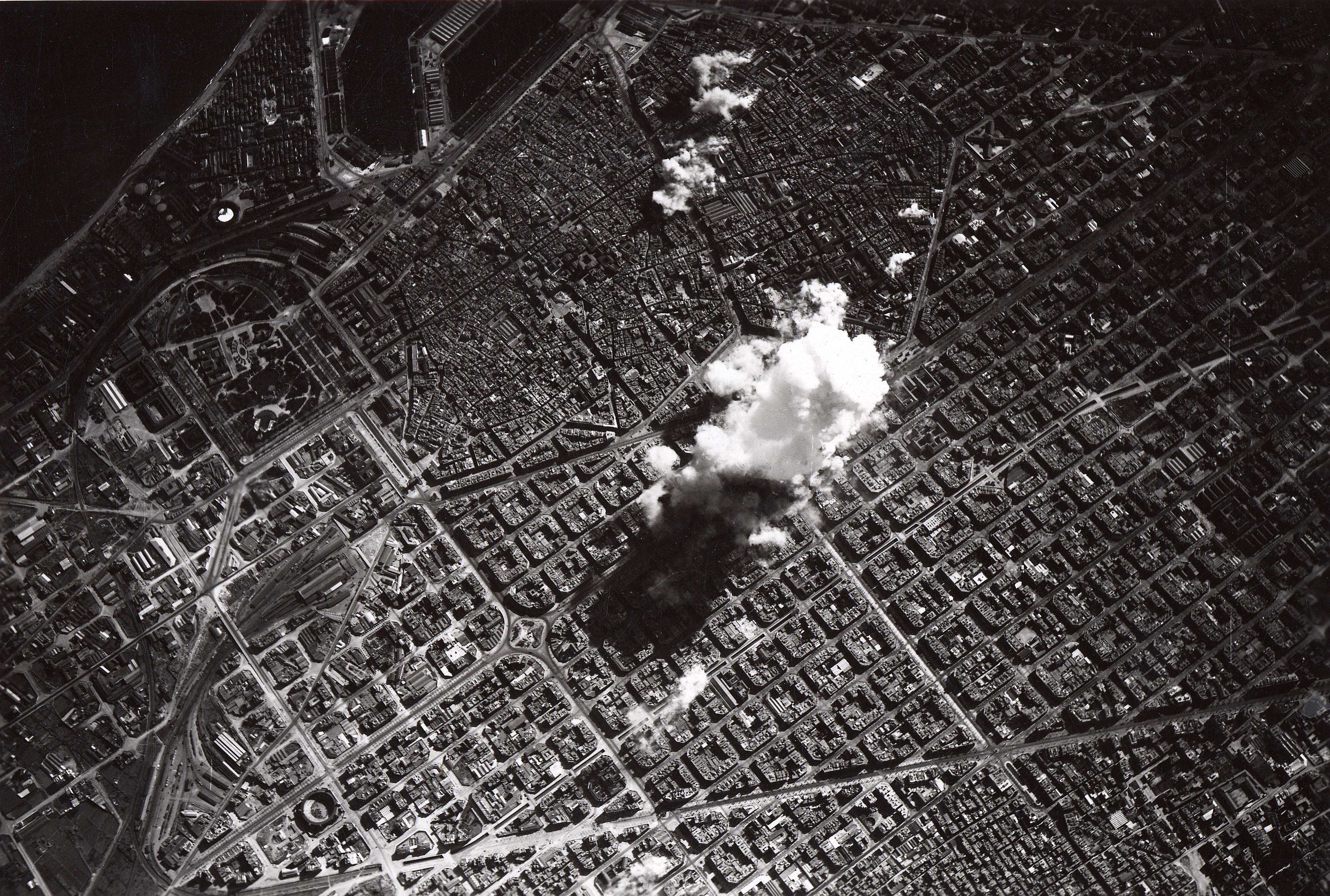 Autor desconegut – Bombardeig de Barcelona per l’aviació italiana el 17 de març de 1938 a les 14.15h, 1938. CRAI Biblioteca del Pavelló de la República.