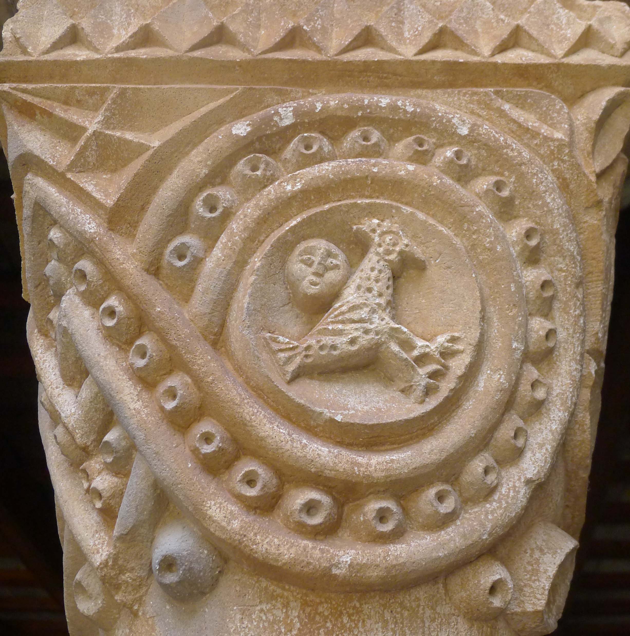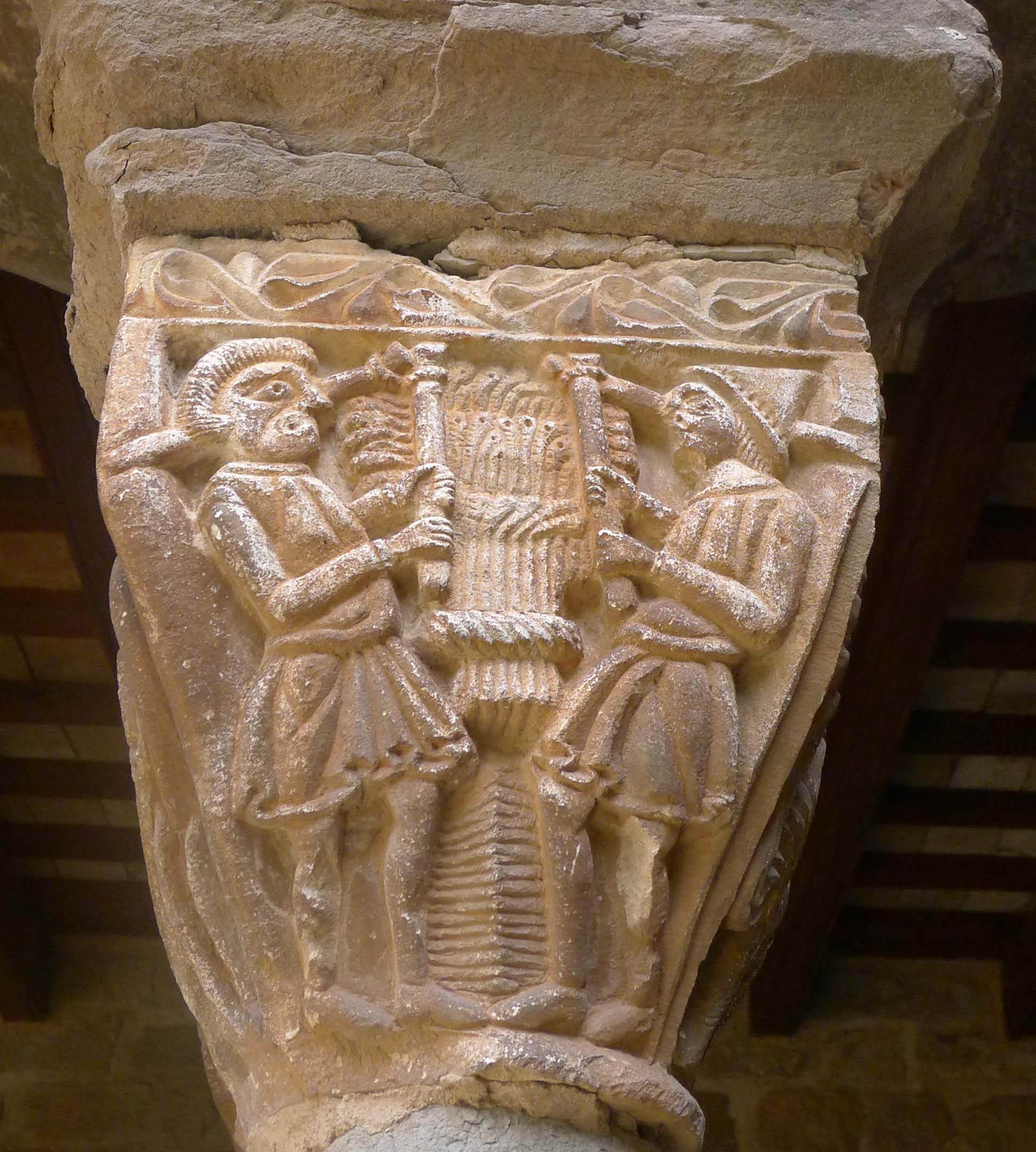 Un cop vist el museu, podem entrar ja al claustre a contemplar els capitells. A l’ala nord hi ha representada la vida de Crist, des del naixement al calvari. També hi ha algunes escenes al·legòriques de la redempció de la humanitat. Són especialment destacables, els que representen la fugida a Egipte, el Sant Sopar i l’entrada de Jesús a Jerusalem. A l’ala oest els capitells estan esculpits, bàsicament, amb bestiari i motius florals, geomètrics i heràldics. A l’ala sud, la més moderna, els motius dels capitells són similars als de l’ala oest. Ens queda l’ala nord, amb una gran riquesa ornamental. Hi podem veure escenes religioses, però també de profanes. Cal destacar les que representen una noia pentinant-se, uns pagesos batent una garba o un bou tocant un instrument musical.