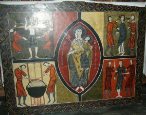 Totes les esglésies eren destinades a ésser policromades; el mosaic era a Orient l’ornament del temple; mes aquí el mosaic era substituït per la pintura. A falta de pintura, s’arreboçava i enlluïa amb calç i s’emblanquinava. Així són la major part dels nostres temples”. De fet, les parets de les esglésies eren com un còmic on s’explicaven les Sagrades Escriptures. Era una forma fàcil d’arribar als fidels en una època en que la gran majoria de la població era analfabeta.