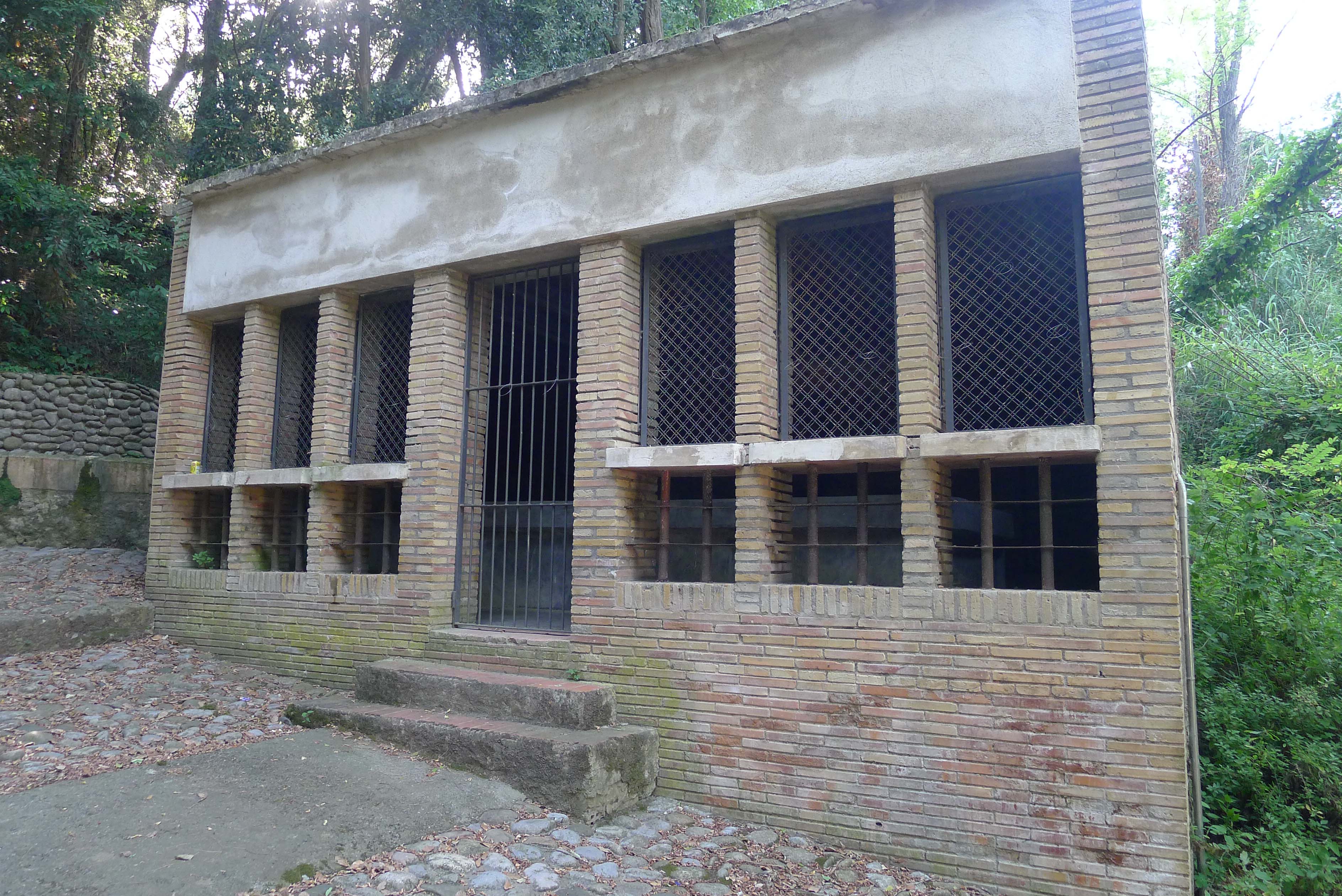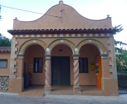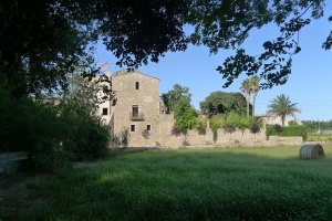 L’antic palau abacial té una mena de porxo que fa de pas interior cobert i com una mena de repartidor que permet l’accés a diferents espais, un dels quals es un pas obert cap a uns esglaons que permeten accedir a la part del darrera, on hi ha una séquia, que acostuma a estar seca. Un cop creuada, un camí puja cap a dos elements singulars del poble, un safareig públic cobert, que encara és utilitzat, i una font natural que gairebé mai ha deixat de rajar. Es tracta de la Font de Sant Miquel de la qual surt l’aigua que abasteix un abeurador per a animals i el safareig. L’aigua sobrant de l’abeurador i del safareig, va regar els anomenats horts del rector.