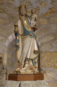 A l’interior de l’església podem veure una Marededéu gòtica policromada. Es tracta d’una imatge de la Mare de Déu de Gràcia d’alabastre de Beuda. Està dempeus, amb el cos lleugerament inclinat i du el Nen Jesús a coll. La imatge està col·locada sobre un capitell treballat amb decoració vegetal que fa la funció de peanya, i que se suposa que podria procedir del claustre desaparegut. El capitell està sobre una columna moderna.