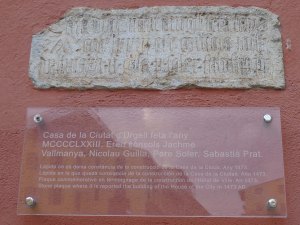 Làpida amb el nom dels cònsols, a la façana de l’Ajuntament.