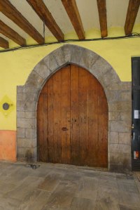 Al punt on es troben el carrer dels Canonges i el carrer Major hi ha el principal vestigi de l’antiga muralla que envoltava la ciutat medieval, és l’anomenat Portal Vell d’Andorra que s’obria al peu d’una de les torres de la muralla. El nom el rep perquè al segle XIV es va ampliar el recinte murallat i el portal que duia a Andorra era el que s’obrí al capdamunt de l’actual carrer de Capdevila, per això aquest va passar a dir-se Portal Vell. El que podem veure avui és una porta amb arc apuntat que comunica els carrers Major i dels Canonges com una mena de porxada sota edificis residencials i és que, com ha passat sovint al llarg de la història en moltes poblacions, un cop perdut l’ús defensiu, la torre va ser reconvertida en habitatges.