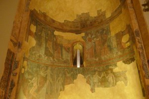 A l’entrada del museu, al costat de la botiga, es conserven alguns relleus –capitells, mènsula i fust de columna- de la catedral romànica, consagrada l’any 1038 pel bisbe Oliba i que va ser enderrocada per construir l’edifici actual.
