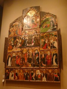L’art gòtic està repartit entre la planta baixa i el primer pis. A la planta baixa i ha les peces d’entre els anys 1300 i 1420. Entre d’altres peces cabdals d’aquesta època, hi ha obres del mestre de Soriguerola, de Jaume Cabrera i de Joan Mates, i també de Lluís Borrassà -retaules de Santa Clara-, i de Ramon de Mur. Pel que fa a escultura es pot destacar el retaule de la passió, mort i resurrecció de Crist, del taller de Bernat Saulet i la Marededéu de Boixadors.