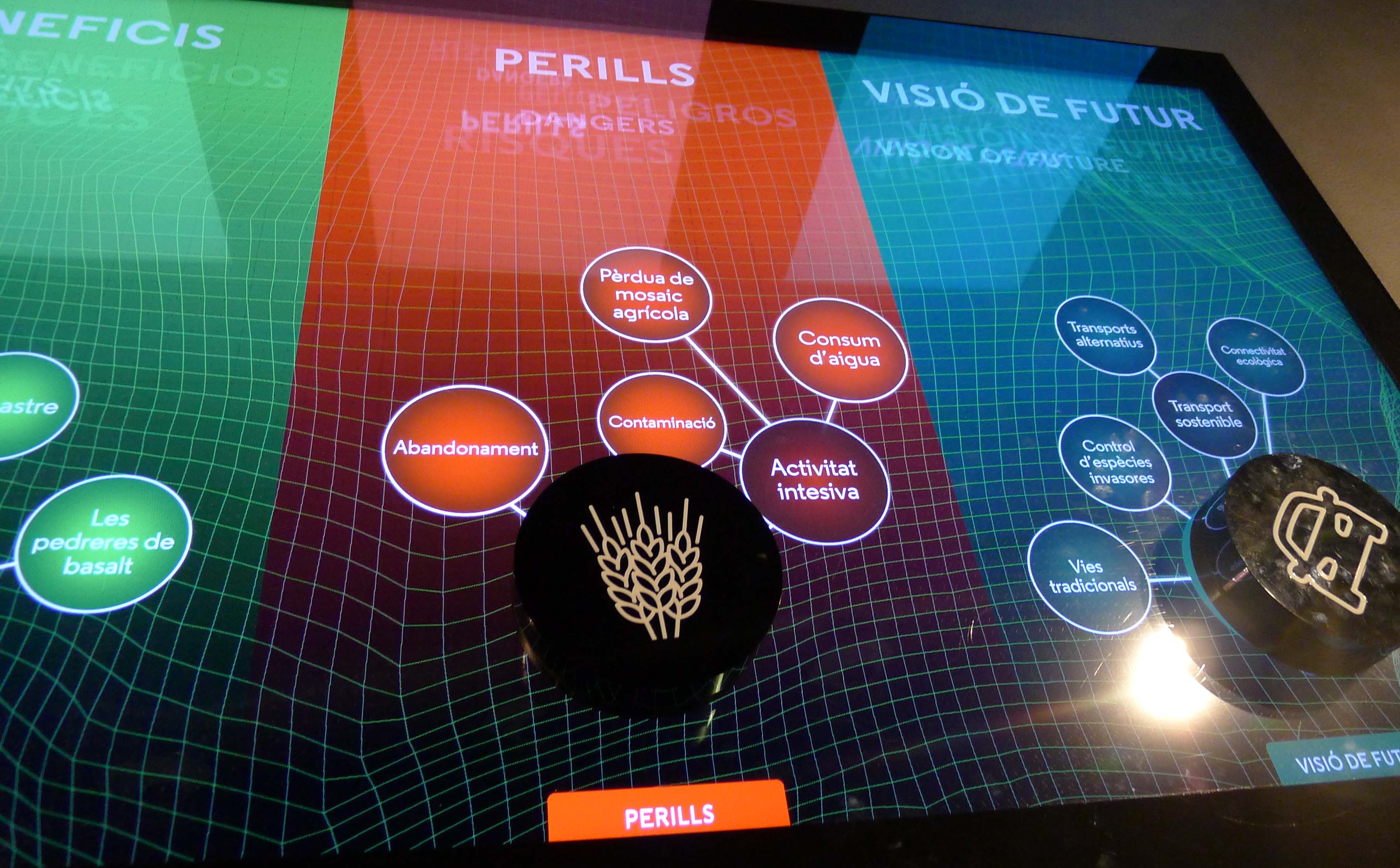 L’espai expositiu de la Cambra està fet de manera que permet fer-hi diferents nivells de lectura. És molt visual, s’hi pot fer una ullada relativament ràpida, que permet adquirir un coneixement una mica més superficial, però, qui vulgui, també pot aprofundir en el coneixement del món de la vulcanologia i la sismologia.