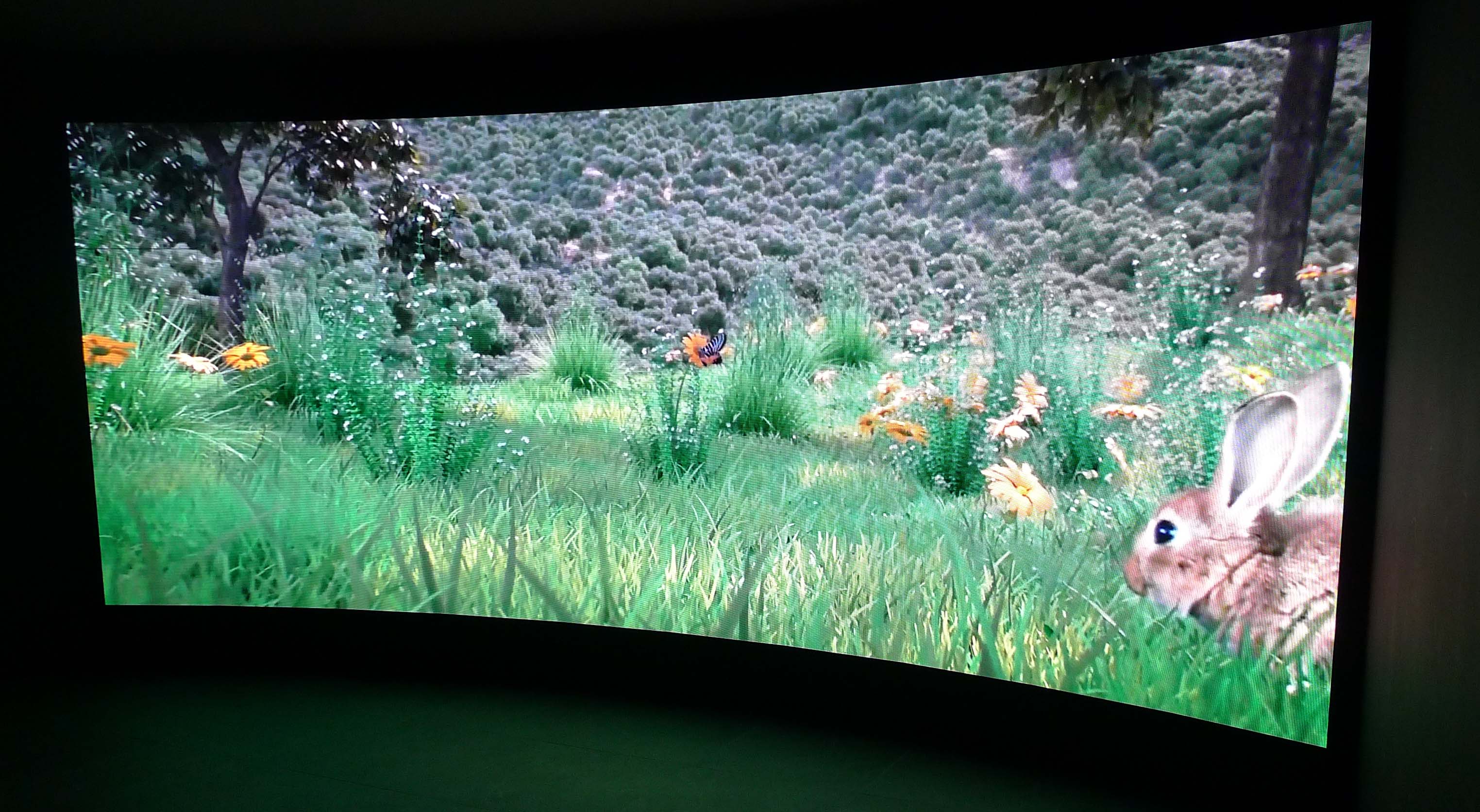 A l’entrada de la Cambra, ens rep un volcà amb llengües de lava que baixen pels costats i al fons de la sala hi podem veure una paret diferent de les altres parets, és especial, va de banda a banda de la sala, i s’hi projecte un mapatge. En realitat és un gran talús de greda del mateix volcà del Puig del Roser, a l’interior del qual estem. El mapatge ens permet veure com es va formar i fixar-nos en diferents detalls de la seva composició.