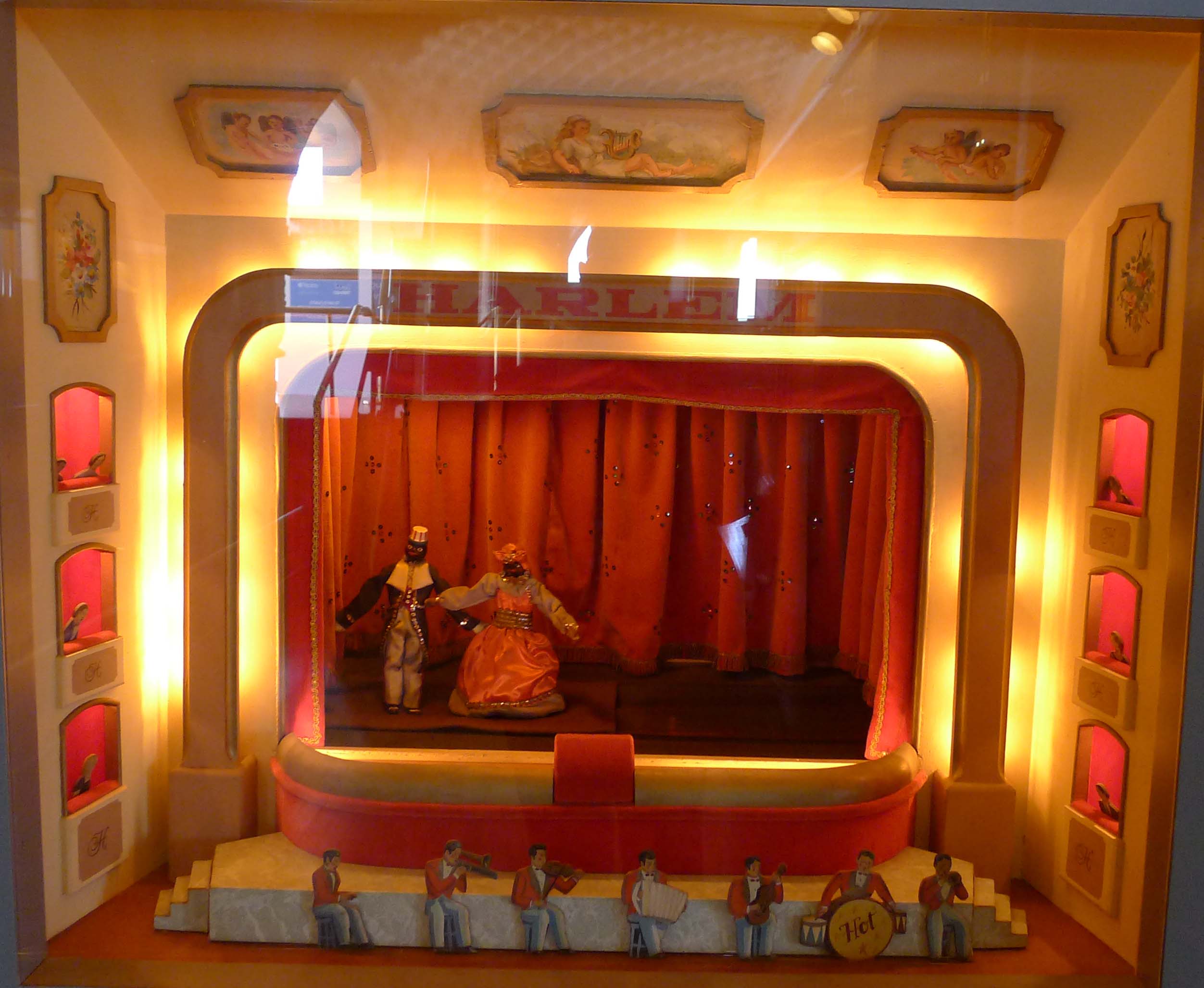 Ja hem dit que la música i les arts escèniques hi són molt presents. Ja hem vist diferents pallassos, alguns amb efectes musicals. També hi ha l’Orquestra prodigiosa, construït l’any 1909 per Vichy/Triboulet, mostra una orquestra de jazz amb sis músics que toquen diferents instruments. Altres autòmats sortits dels tallers del Tibidabo són el Teatre de marionetes, o Harlem, de l’any 1954, i que representa uns parella ballant a l’escenari d’un teatre d’aquest barri novaiorquès. I també hi ha un ball al Teatre de l’opera, que està situat a l’escenari que hi ha en un cantó de la sala dels autòmats, amb un teló que s’obre quan s’acciona el giny.