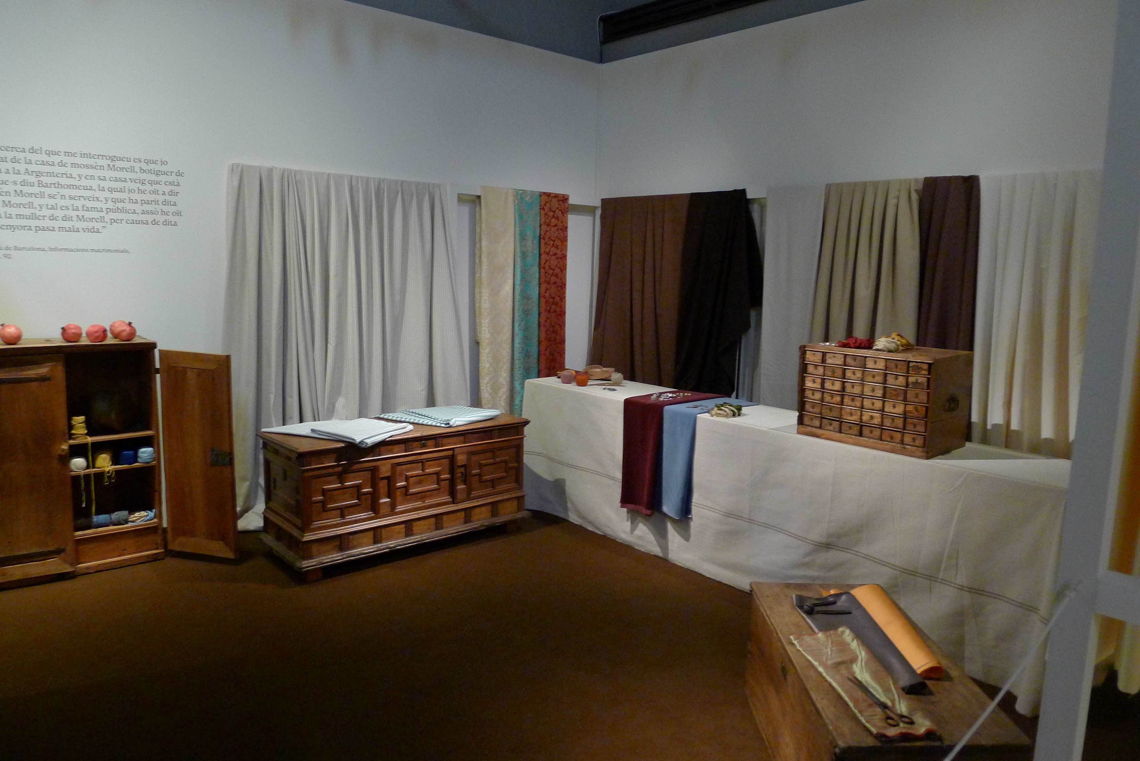 A l’exposició ens expliquen que Juliana era filla il·legítima de Joan Antoni Morell, home ric i poderós, i filla natural de Bartomeua, i adoptiva de Joana, que procedia d’un llinatge molt il·lustre. El seu germà i la seva mare adoptiva van morir de forma prematura i Juliana es va quedar només amb el seu pare, que era mercader, botiguer i canvista amb quatre botigues a Barcelona. Inicialment es dedicava al negoci de les teles, però també va obrir-se a altres sectors ben diversos, com l’alimentació, la joieria o les obres d’art. Va mantenir diversos litigis amb banquers i personatges poderosos, cosa que li va comportar enemistats importants i es va veure involucrat en una mort i, acusat d’assassinat, l’any 1601 va marxar cap al sud de França. Pare i filla van viure a Carcassona, Colònia i París, per instal·lar-se definitivament a Lió.