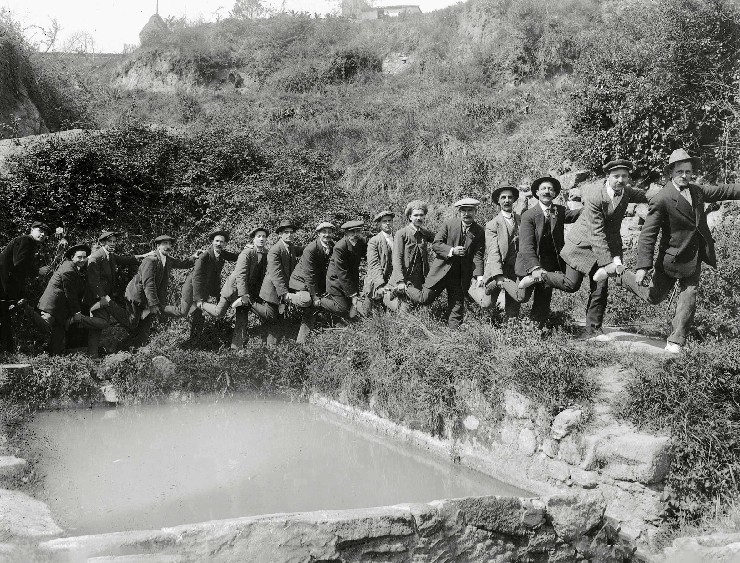 Grup d’homes al voltant d’un petit estany, dècades del 1910-1920. Antoni Rosal Grelon. Arxiu Nacional de Catalunya.