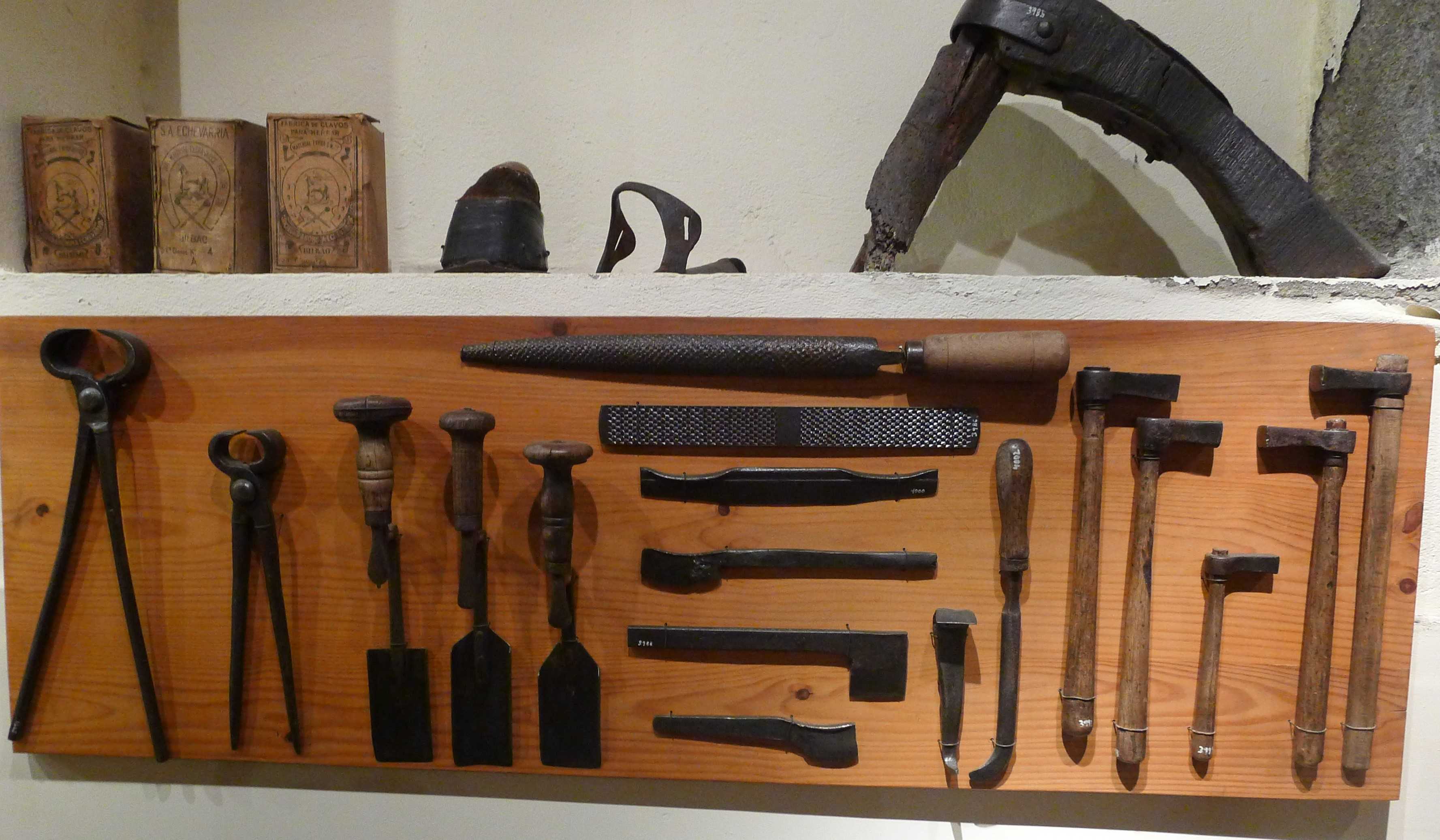 L’adober és qui converteix la pell dels animals en cuir i, a banda de fer-ne peces de vestir, també fa tota mena de corretges i guarniments per a les cavalleries. Entre les eines hi ha ganivets de fendre, tenalles o ferros de pelar i també hi podem veure complements com sivelles o cascavells. L’esparter és un altre dels oficis presents. La seva feina consisteix en teixir fibres d’espart i cànem per fer cordes, sàrries i estorats. Entre les eines de l’ofici hi ha la gramadora, l’aspi o la filosa. El ferrador és el ferrer especialitzat en construir, adaptar i posar ferradures a les cavallaries. Utilitza encluses, tenalles, llimes, martell francès o claus de ferrar, entre altres eines.
