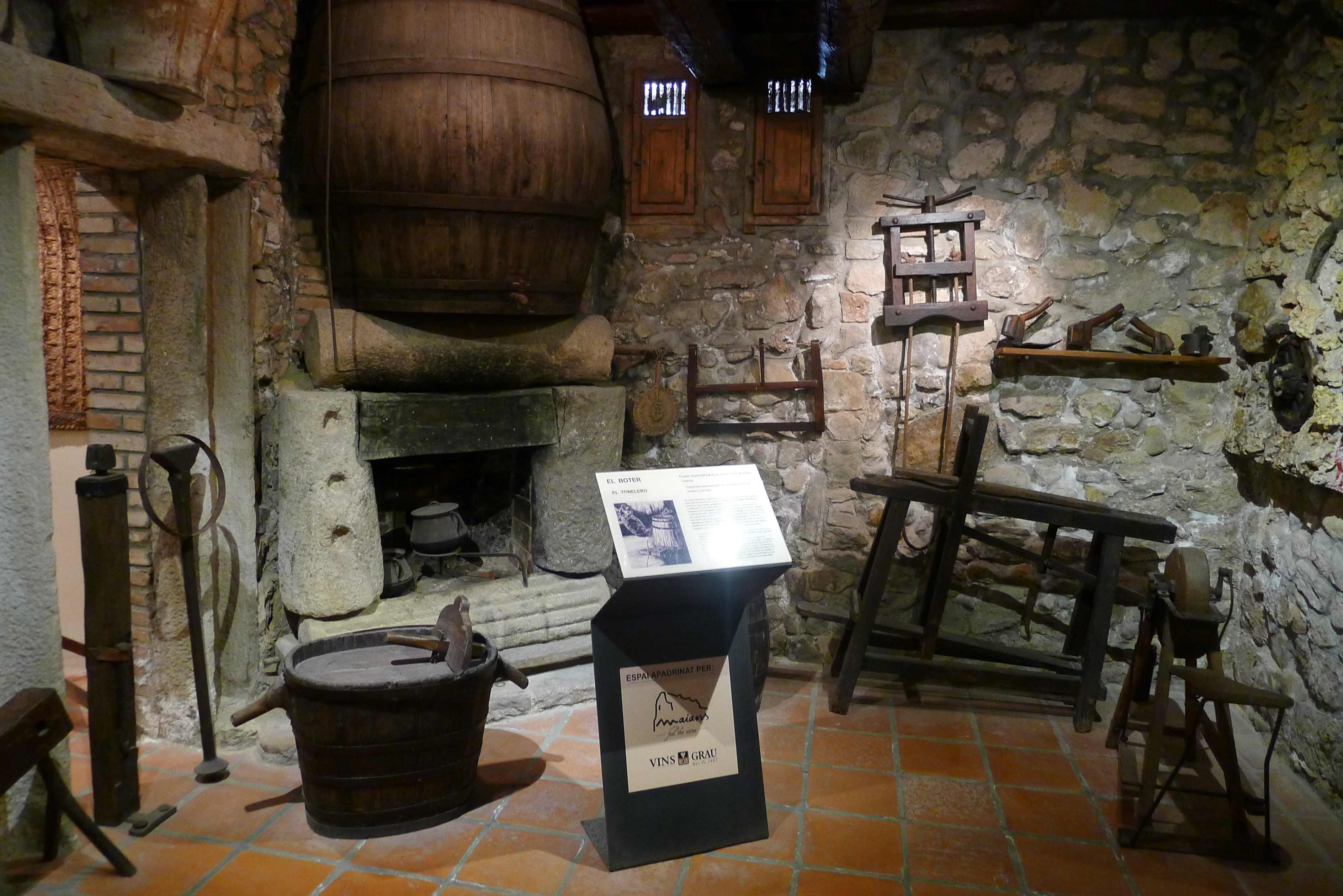 Cada ofici té el seu espai amb les eines corresponents molt ben posades i ordenades. Així a l’espai de la carreteria podem veure les eines pròpies del fuster especialitzat en fer carros: al costat de rodes de carro a mig fer hi ha compassos, serres, xerracs, martells, llimes… A l’apartat del boter hi ha botes i barrils i eines pròpies d’aquest fuster especialitzat en fer recipients estancs, com el ciment o garlopa, la doga, la dalla o la barrina… El baster es dedica a fer i reparar selles, basts, collars i guarniments dels animals de tir i dels carros. Entre el seu einam podem veure tot el que cal per tallar i cosir el cuir, com coltells, trepans, punxons…