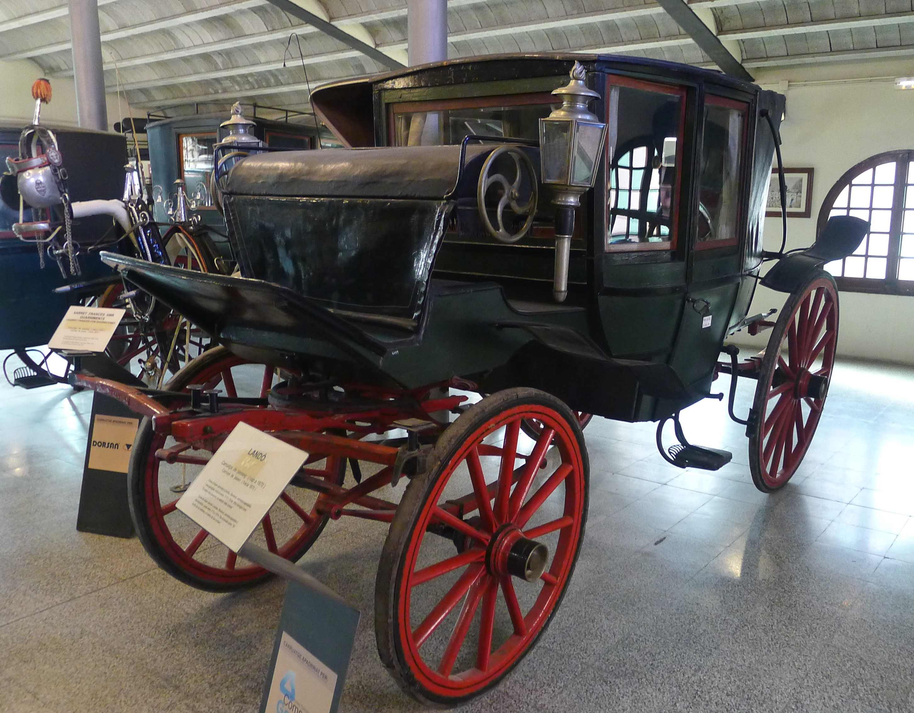 El segon pis està dedicat als carruatges i al transport de persones. Hi ha un landó, una galera mallorquina, una berlina, un trineu per troika, un carruatge de passeig de principi del segle XX, molt utilitzat per la noblesa tsarista i que es feu molt popular perquè va sortir a la pel·lícula Doctor Zhivago. També hi ha un faetó de capota, un òmnibus, una tartana de viatge, un xarret francès i una carrossa funerària, entre altres. Les sales del museu es complementen amb la ja citada dedicada a les obres escultòriques d’Antoni Ros.