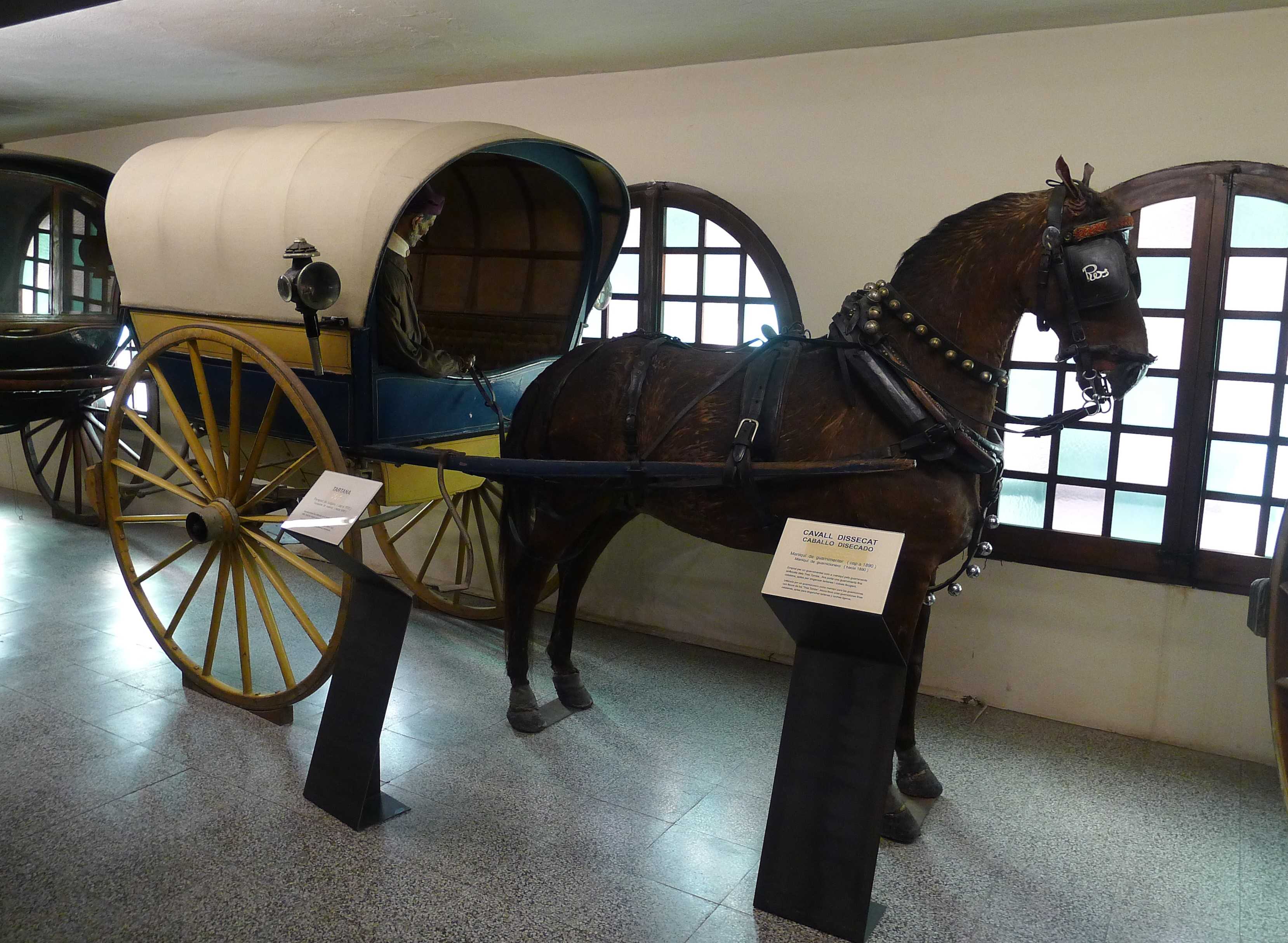 Els primers espais expositius que trobem en entrar al museu, estan dedicats a explicar l’evolució del traginar i de les vies de comunicació. Així, podem saber que el tir de cavalls va anar molt lligada a l’aparició i evolució de la roda, o que el tir de cavalls va passar del tir pel coll al tir pel pit gràcies a la invenció d’un collar al segle VII, mentre que el tir amb bous no ha variat el tir pel cap, que es manté des de fa 4.000 anys. En aquest espai hi ha un carro amb llança i pescant, un carro de carrera o una nàrria, un carro de roda massissa datat de cap el 1800.