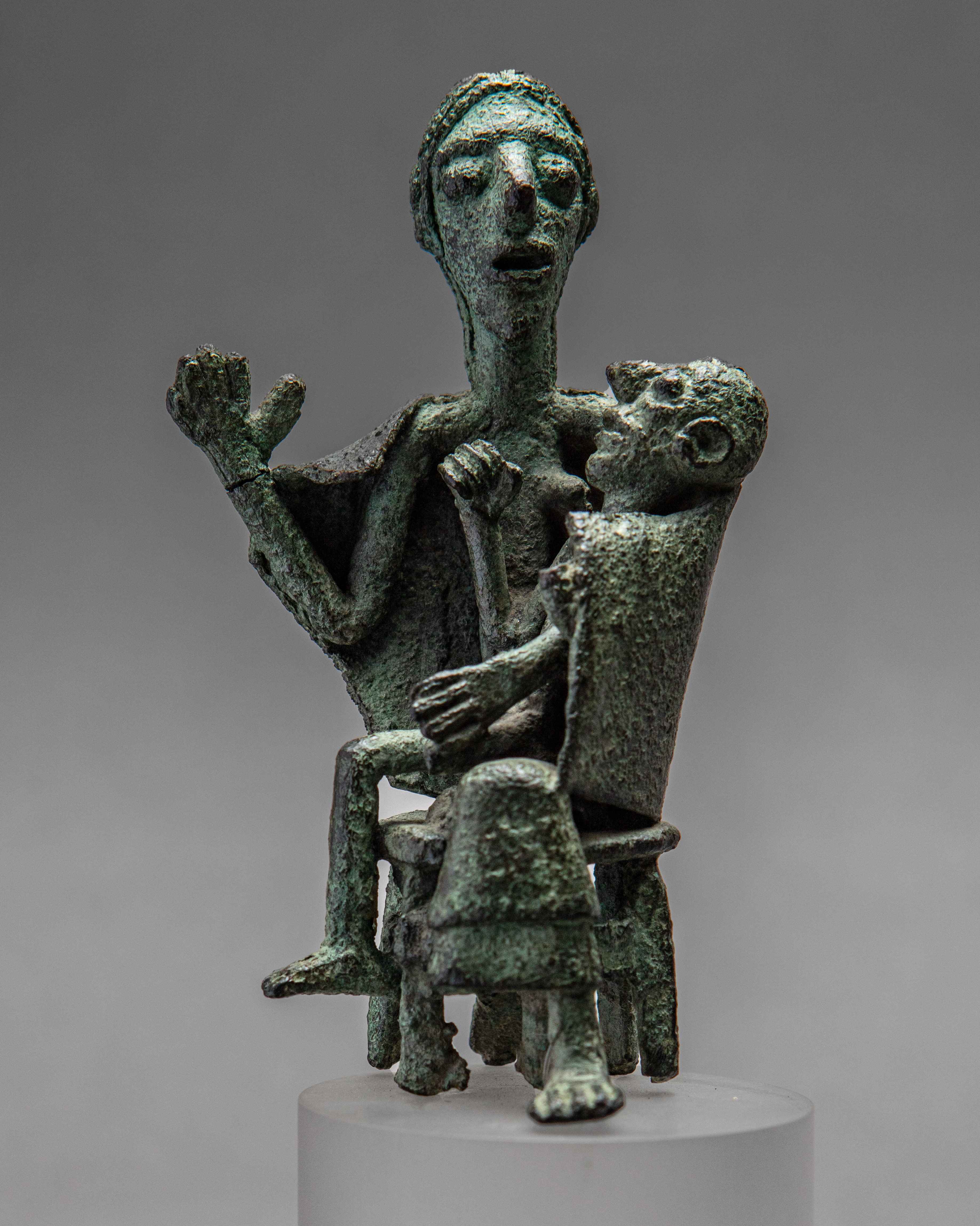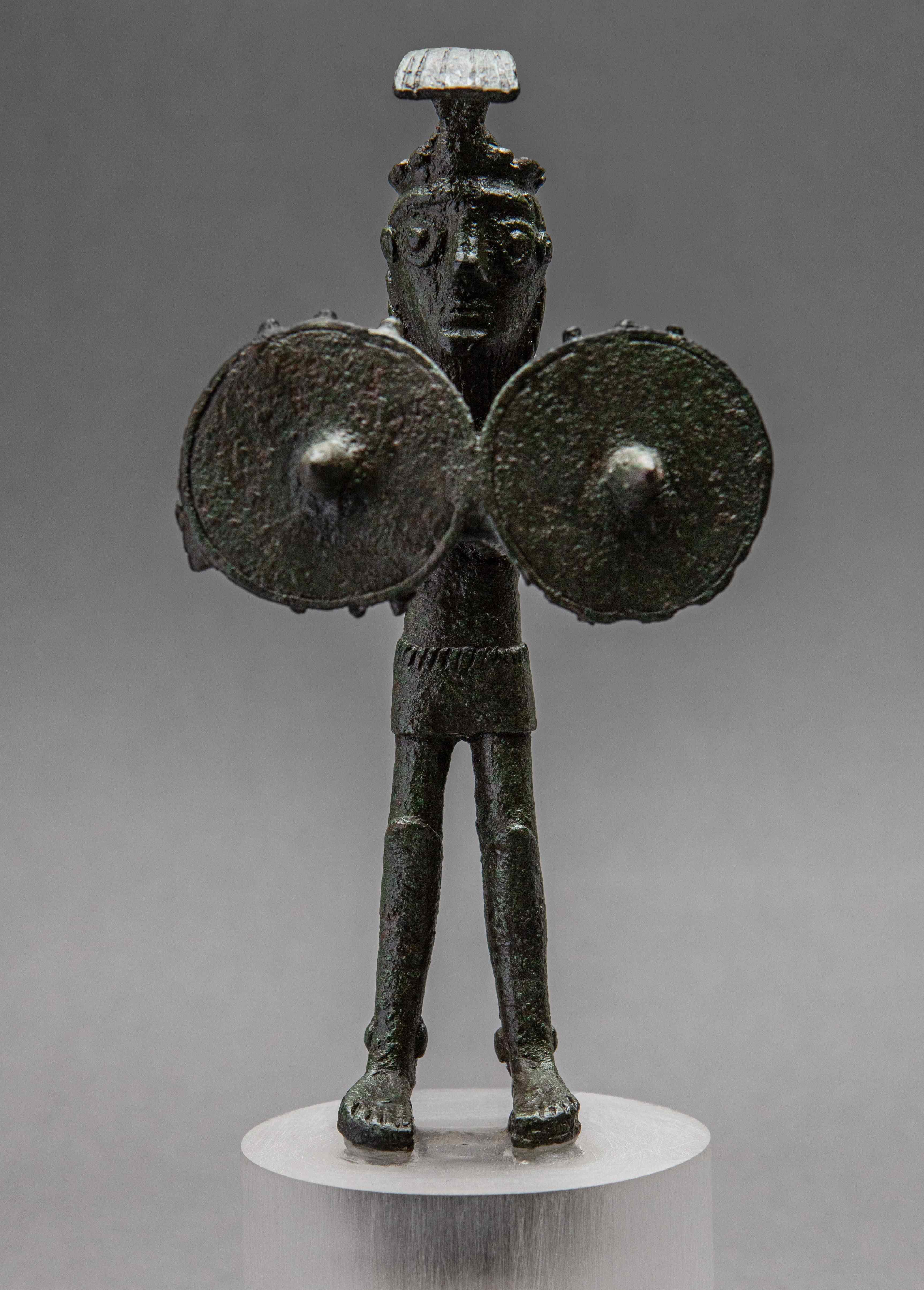 Entre els més de 200 objectes que s’hi exposen hi ha diverses estatuetes de bronze de gran interès, com un cap de cérvol, una figureta masculina, un guerrer amb dos escuts, una dona asseguda amb un infant o una nau en miniatura, una de les anomenades “barquetes”, que s’oferien com a ofrenes i s’utilitzaven com a llums d’oli a l’interior dels santuaris.