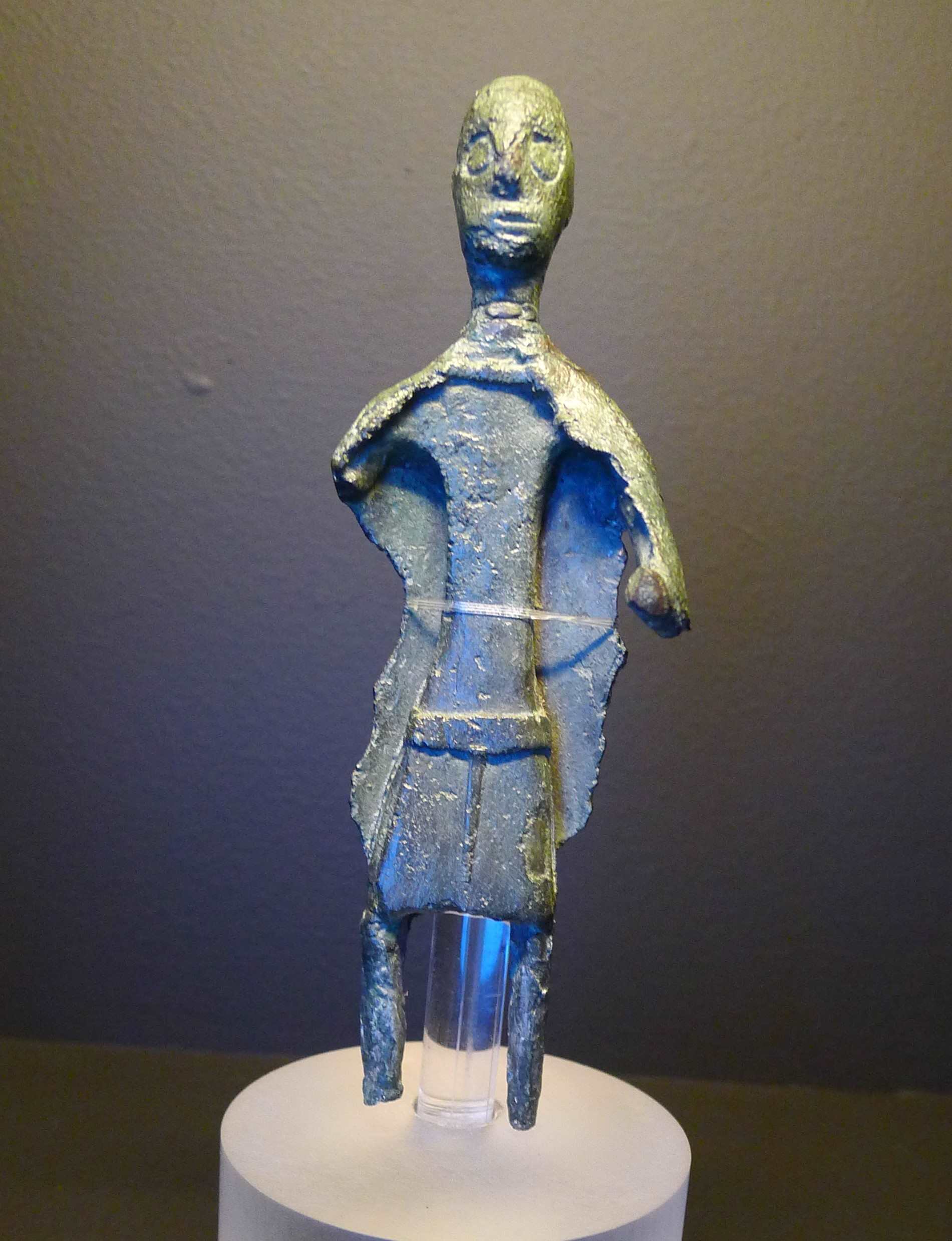 L’herència nuràgica. A l’edat de ferro van produir-se canvis socials a Sardenya, però l’herència de la civilització nuràgica es va mantenir d’una o altra manera. Els segles IX i VIII abans de la nostra era van arribar mercaders fenicis que van assentar-se a les costes sardes i que van compartir espais de vida amb la població local. Més endavant, al segle VI abans de la nostra era, l’illa entre en els plans expansionistes de Cartago i tot i que els sards van intentar rebutjar els cartaginesos, no van acabar d’aconseguir-ho, fins que finalment cap els anys 238-237 abans de la nostra era, l’illa acabarà en mans de Roma, la potència mediterrània del moment. Tot i això, els vestigis de la cultura nuràgica van continuar més o menys presents. Així s’explica a l’exposició: “certs elements del substrat cultural continuaran vius, com ara el culte al Sardus Pater (el Pare Sard), venerat en temples com el d’Antas i representat en monedes i figuretes. Les fonts històriques i epigràfiques romanes també presenten una rica onomàstica prellatina de tradició nuràgica. L’herència ancestral persisteix fins a l’alta edat mitjana, com ho demostra una carta del papa Gregori el Gran de l’any 594, on es queixa que els muntanyencs de Sardenya continuen adorant pedres i fustes. Un cop més, torna a sorgir el llegat de la mil·lenària cultura megalítica que encara avui caracteritza el paisatge de Sardenya”.