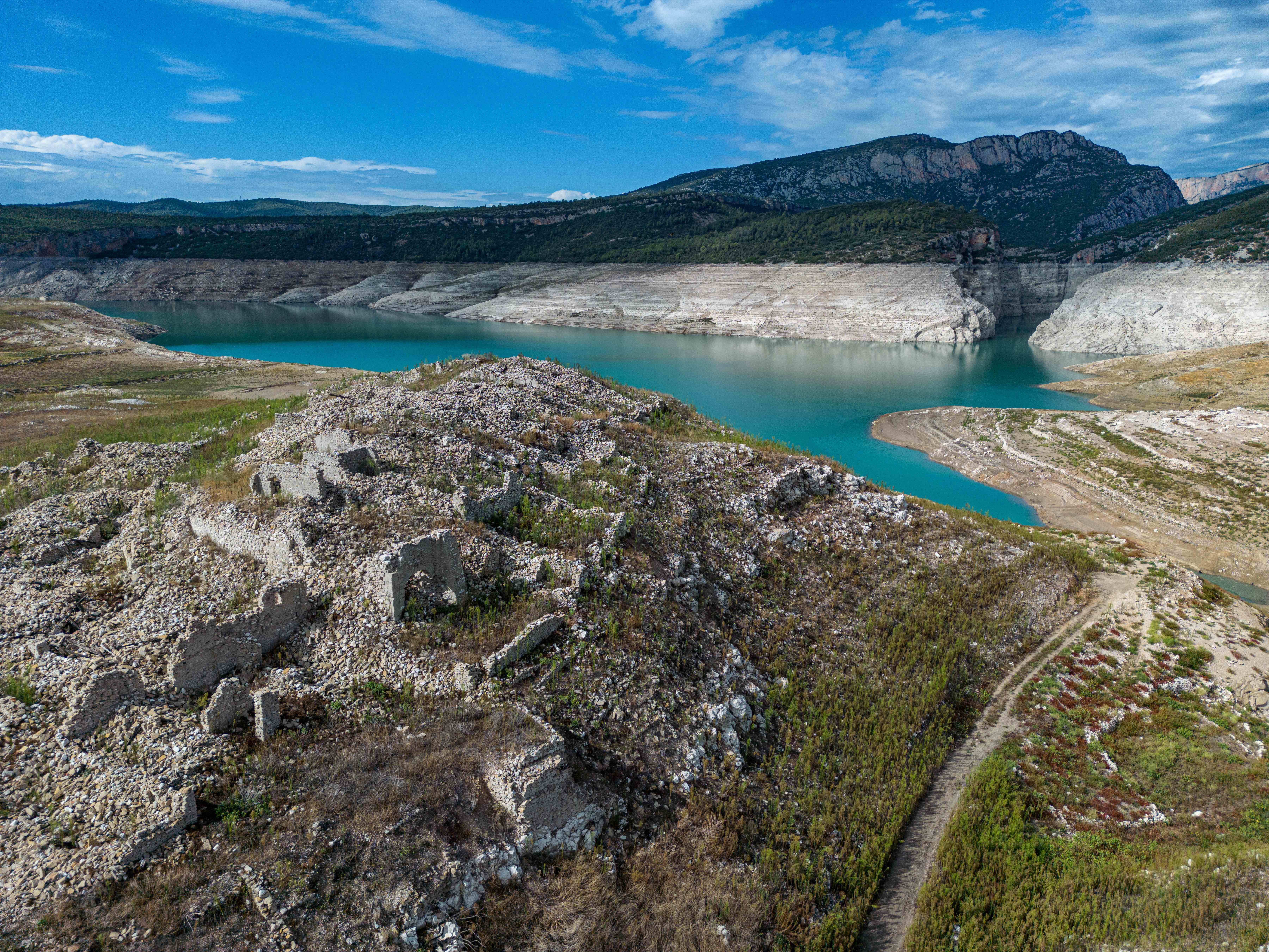 La important sequera que ha afectat Catalunya els darrers anys va fer que els pantans s’anessin buidant i que aparegués bona part d’allò que l’aigua havia engolit. El pantà de Sau i l’església de Sant Romà en són el màxim exponent, però hi ha molts altres embassaments amb edificis i infraestructures al seu fons i no només. L’arribada de l’aigua a tots aquests espais, ara submergits, va comportar moltes situacions i moltes històries. Dos periodistes, Òscar Palau Just i Jesús Jordi Pinatella, i un fotògraf, Josep M. Montaner Fontarnau, van aprofitar el baix nivell dels pantans per visitar-los i documentar el que estava emergint des dels seus fons. D’aquest projecte en va sortir un llibre, primer, i una exposició, després, tots dos amb el mateix títol: La Catalunya emergida. El llibre el va publicar l’editorial Cossetània, l’any 2024, i l’exposició es pot visitar, fins el 7 de setembre de 2025 al Palau Robert.