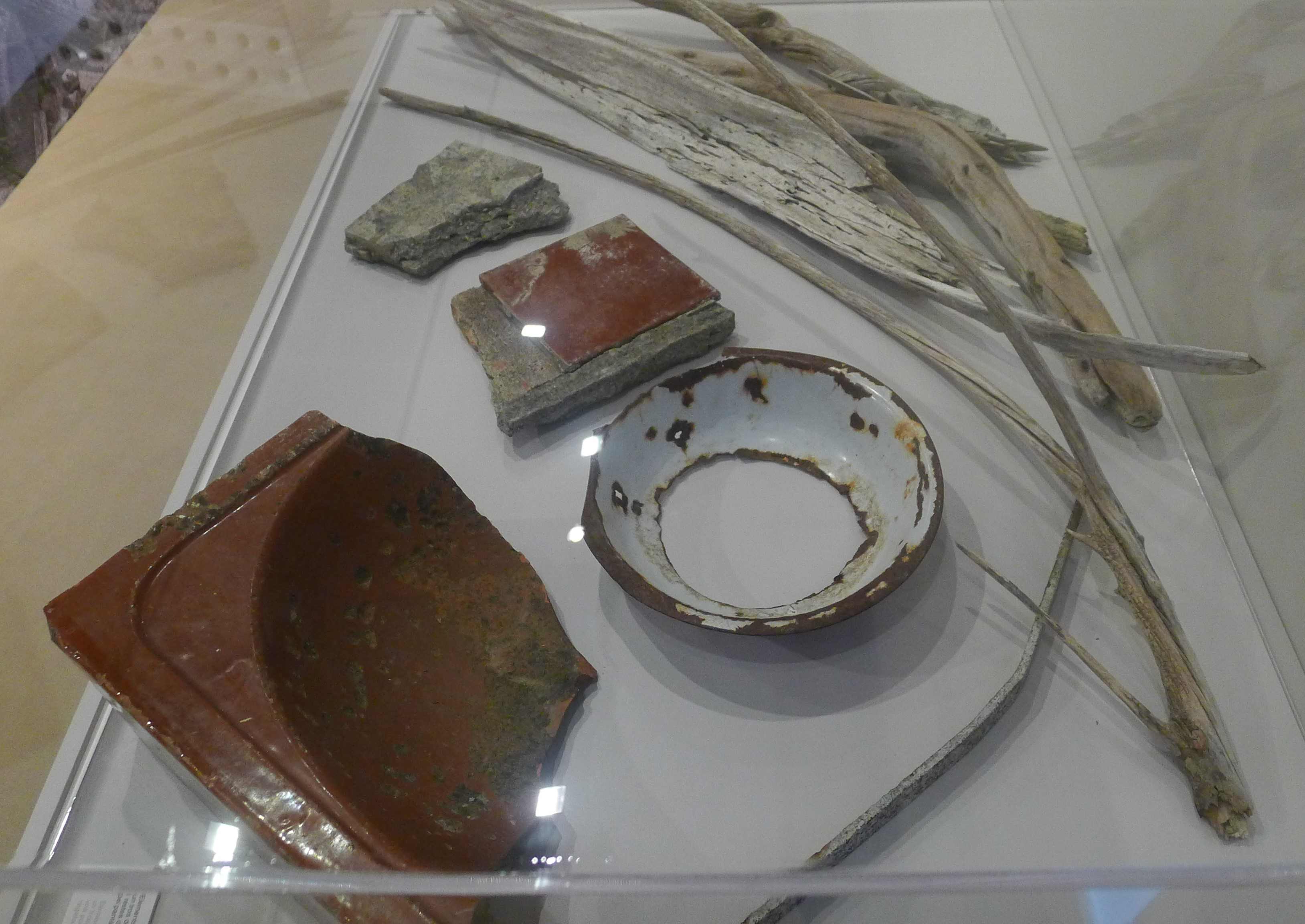 A l’exposició hi ha alguns elements recuperats de les aigües d’algun dels pantans, com una soca de savina trobada dins al pantà d’Oliana i treballada per l’artista de la Conca de Barberà, Màrius Just Rosell, o diferents peces trobades entre les runes de Tragó de Noguera, com un tros de pica, rajoles, part del marc de ferro d’una porta i restes d’un orinal i també troncs i vegetació erosionats pel pantà de Santa Anna.