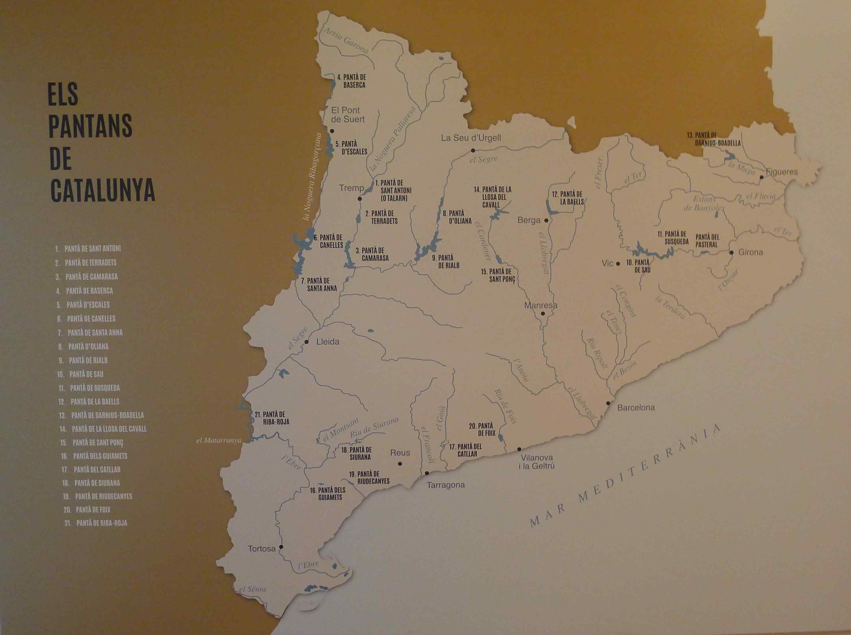A Catalunya hi ha un total de 21 pantans, la història dels quals comença a final del segle XIX amb la presa del Pasteral, precursora del primer pla estatal de pantans de l’any 1902 i s’allarga, per ara, fins l’any 2000, quan es va inaugurar la presa de Rialb. El que avui són, a vista d’ocell, làmines d’aigua, que surten pintades de color blau als mapes, alhora que grans contenidors que serveixen per acumular l’aigua que ha d’abastir les diferents necessitats de les persones des de l’àrea metropolitana fins a pobles més petits, conserven al seu interior tot un seguit d’edificis, camps de conreu, carreteres i vies de tren, que un dia van ser part del paisatge, llars de persones i formes de vida que van acabar negades sota l’aigua. Com es diu al principi de l’exposició: “Els embassaments van sacrificar passat i van obrir futur”.