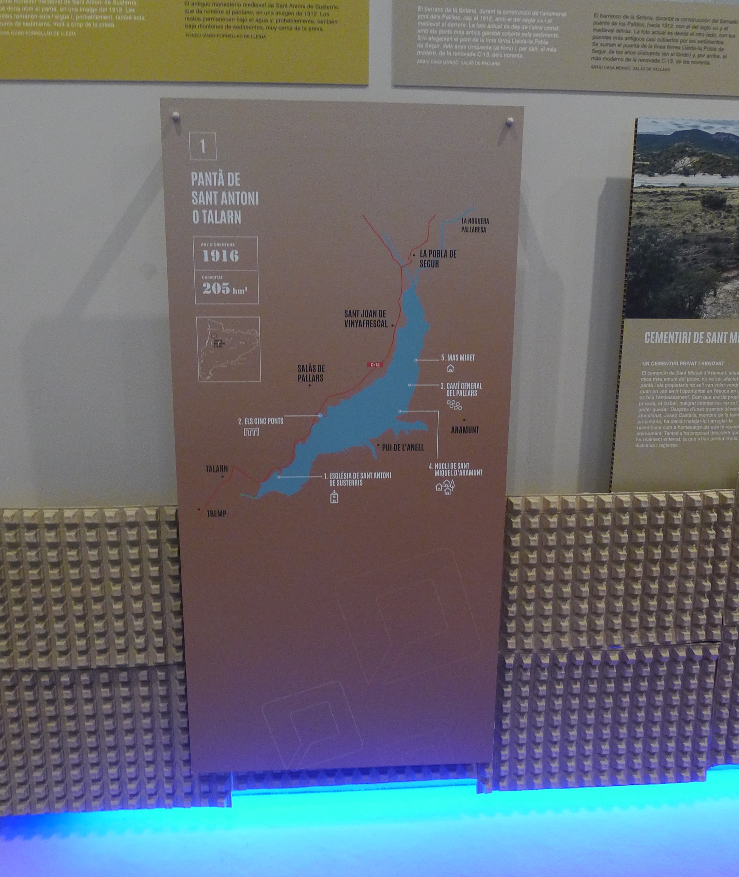 Tornant a l’objecte d’aquesta sortida, l’exposició La Catalunya emergida. Descoberta del país que va quedar sota l’aigua, una text que hi ha al principi n’explica l’objectiu: “Tot i que no en fa tants anys, avui la majoria de la població ignora el passat d’aquests territoris que ja són només una taca blava en els mapes. Però encara queden testimonis directes i molts descendents que es resisteixen a girar full per donar fe que allà, durant molts segles, hi va haver petjada humana: pobles, masies, molins, esglésies, camins, ponts, hostals, conreus i, en definitiva, històries que mereixen ser reivindicades”.