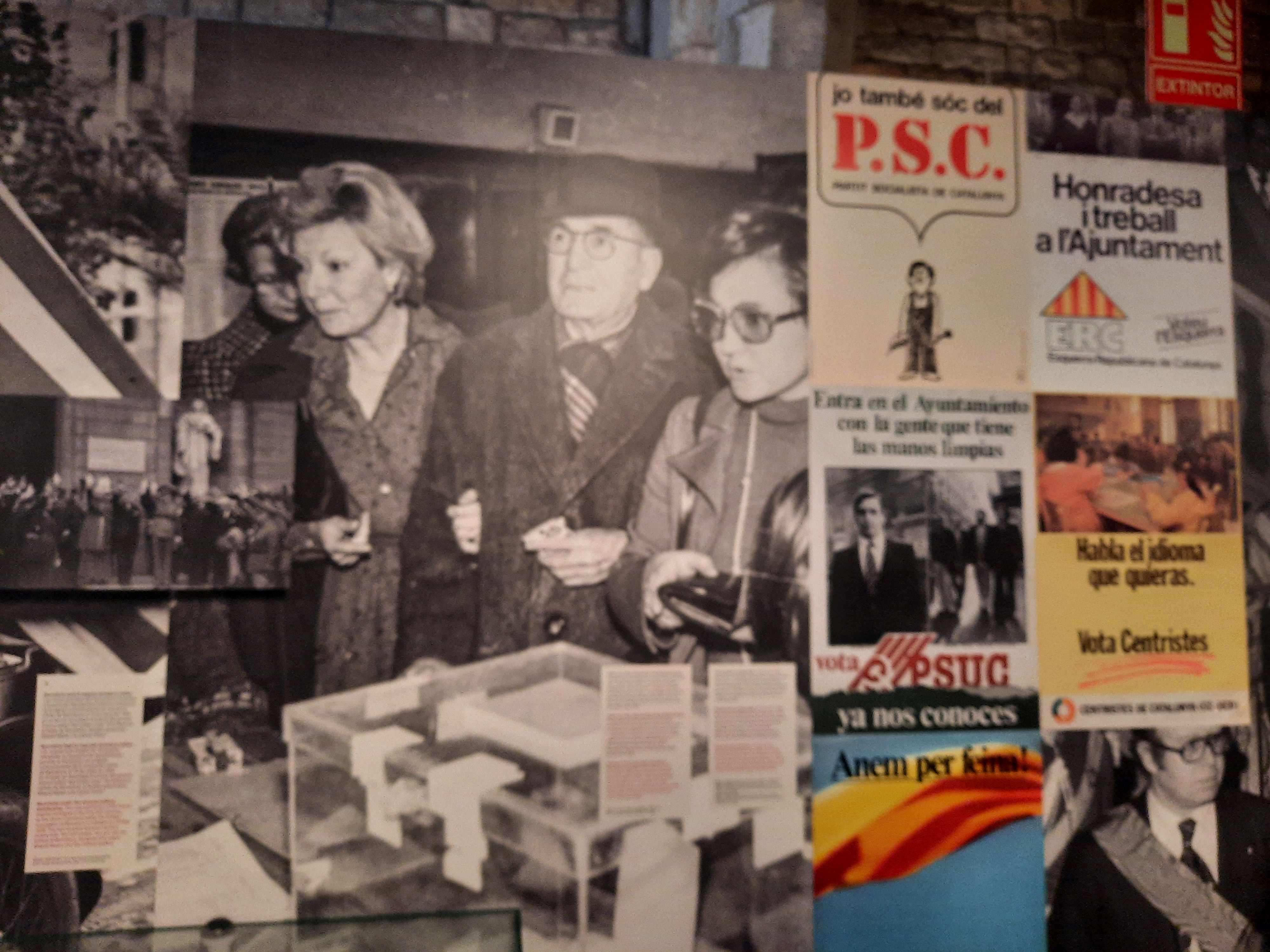 Del restabliment democràtic hi ha l’acta de presa de possessió de l’alcalde Narcís Serra, guanyador de les eleccions de l’abril de 1979. Entre les fotografies que es poden veure hi ha una orla commemorativa amb els regidors de l’Ajuntament de Barcelona que van gestionar la febre groga de 1870, i també imatges de la campanya electoral per l’aprovació de l’Estatut de 1932, de les eleccions municipals de 1979, els cartells dels principals partits que s’hi van presentar i una gran fotografia del primer consistori democràtic. Aquest àmbit acaba amb documents d’alguns dels municipis independents del pla de Barcelona abans de ser agregats a la gran ciutat, entre els quals llibres d’actes de Sant Andreu de Palomar, de Sant Martí de Provençals, de Sant Joan d’Horta o de Sant Vicenç de Sarrià.